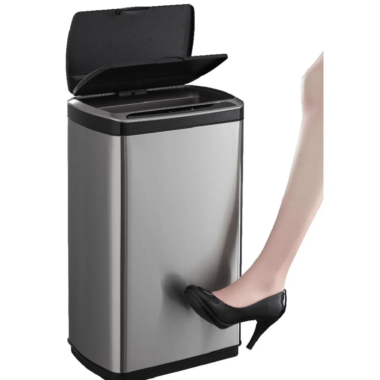 Pratique et hygiénique, le couvercle s’ouvre et se referme automatiquement en la touchant du pied.