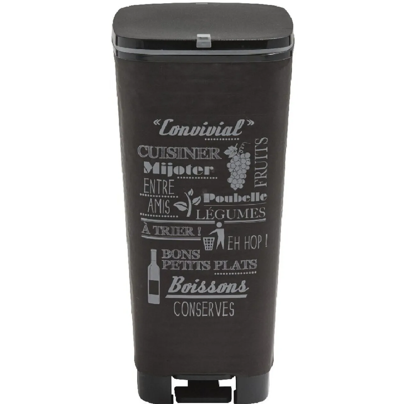 Poubelle à pédale grise avec inscriptions, cont. 45 L, dim. 29×44,5xh.60,5 cm, polypropylène.