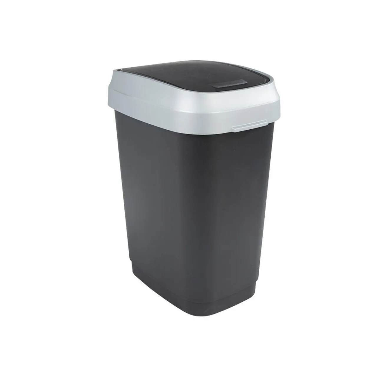 Poubelle à rabat Kis de couleur noir et gris.