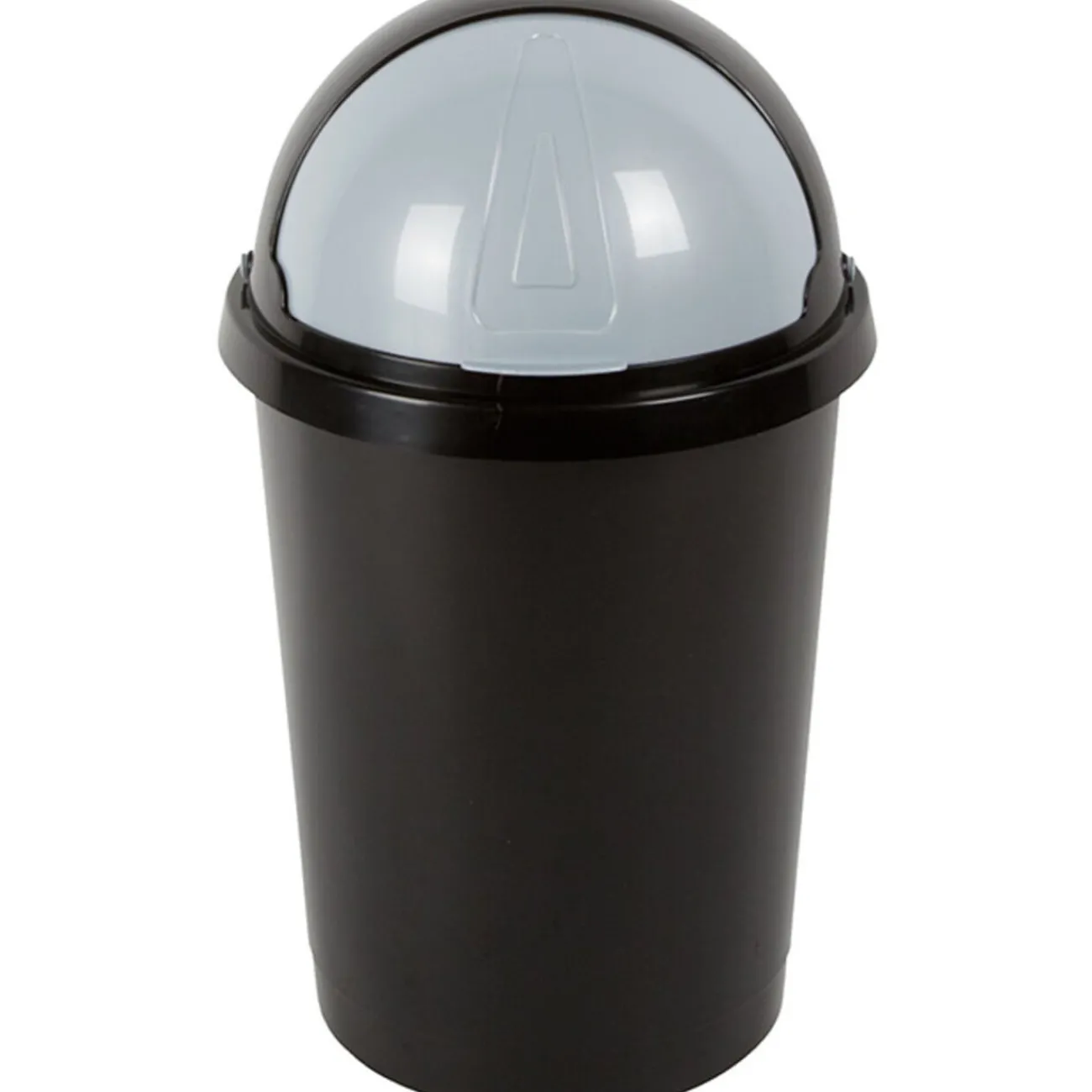 Poubelle à rabat 25 L noire et grise, ø 33,5 cm, h. 58 cm, plastique.