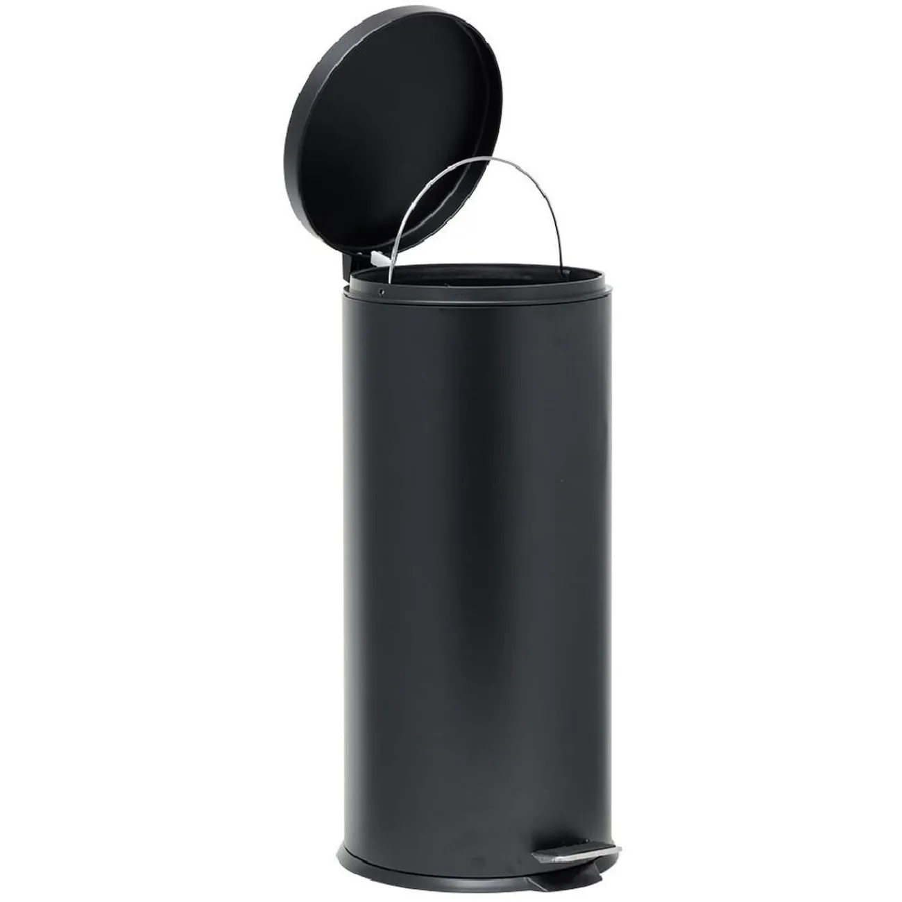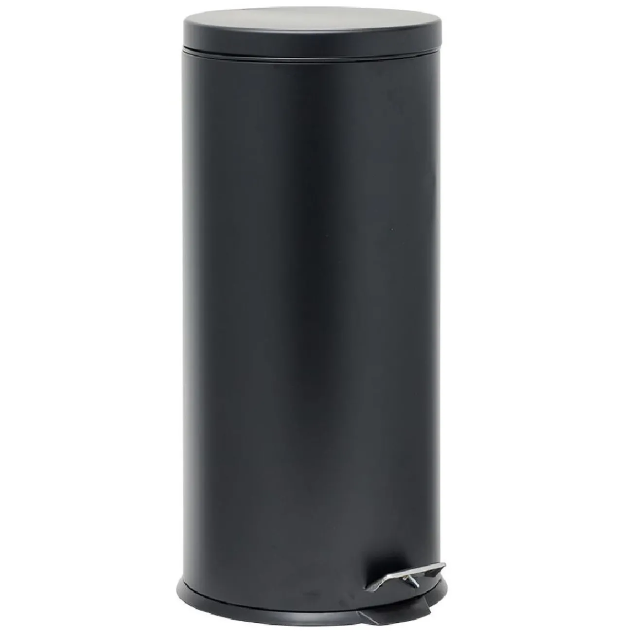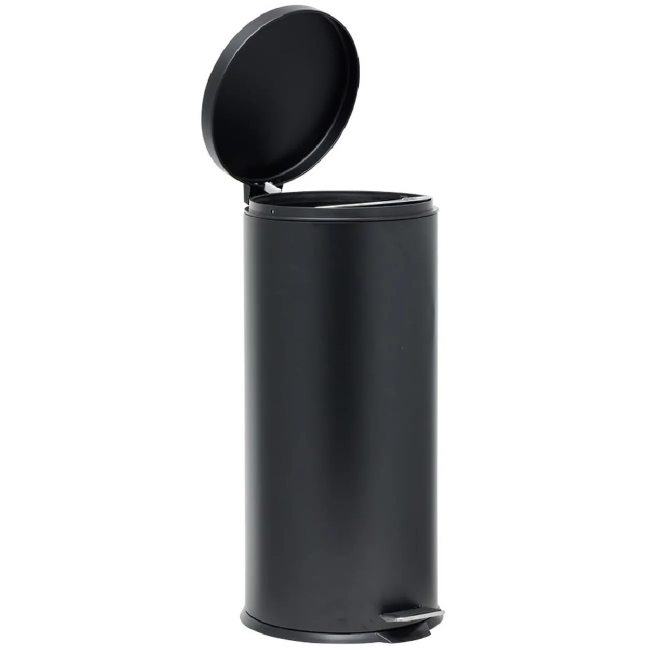 Poubelle à pédale en métal noir facile à nettoyer grâce à son seau intérieur en plastique.
