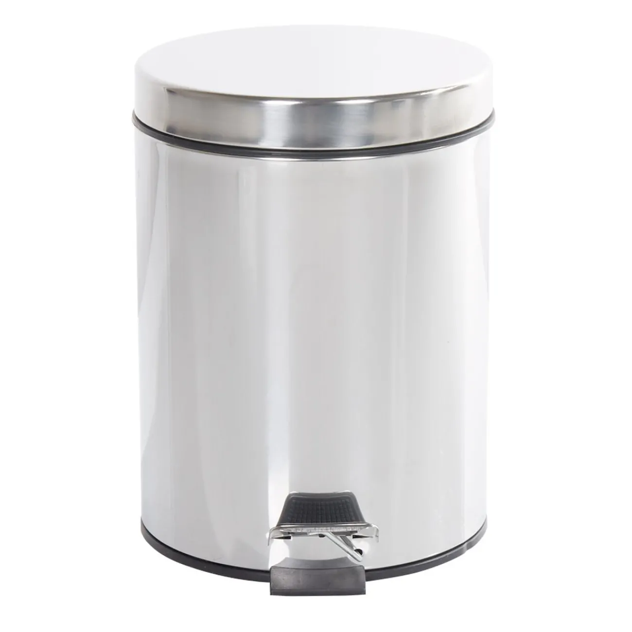 Poubelle ronde de couleur gris métallisé et d’une contenance de 5L.