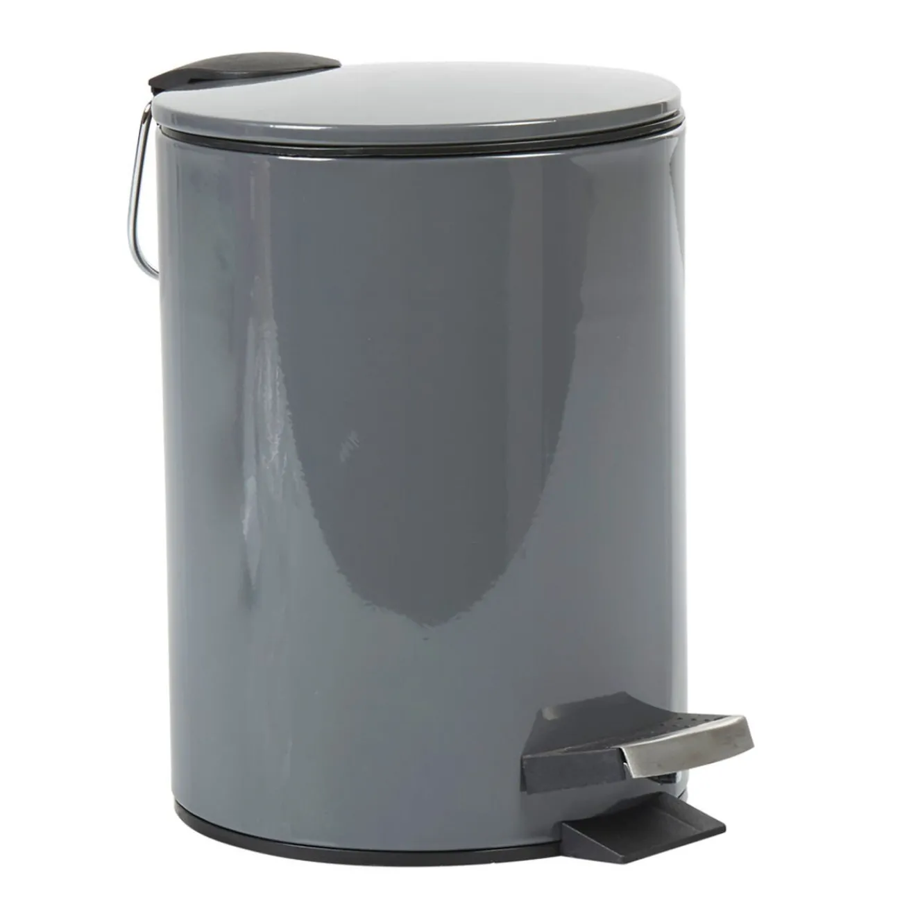 Poubelle de salle de bain de couleur gris foncé à pédale, cont. 3 L, métal.