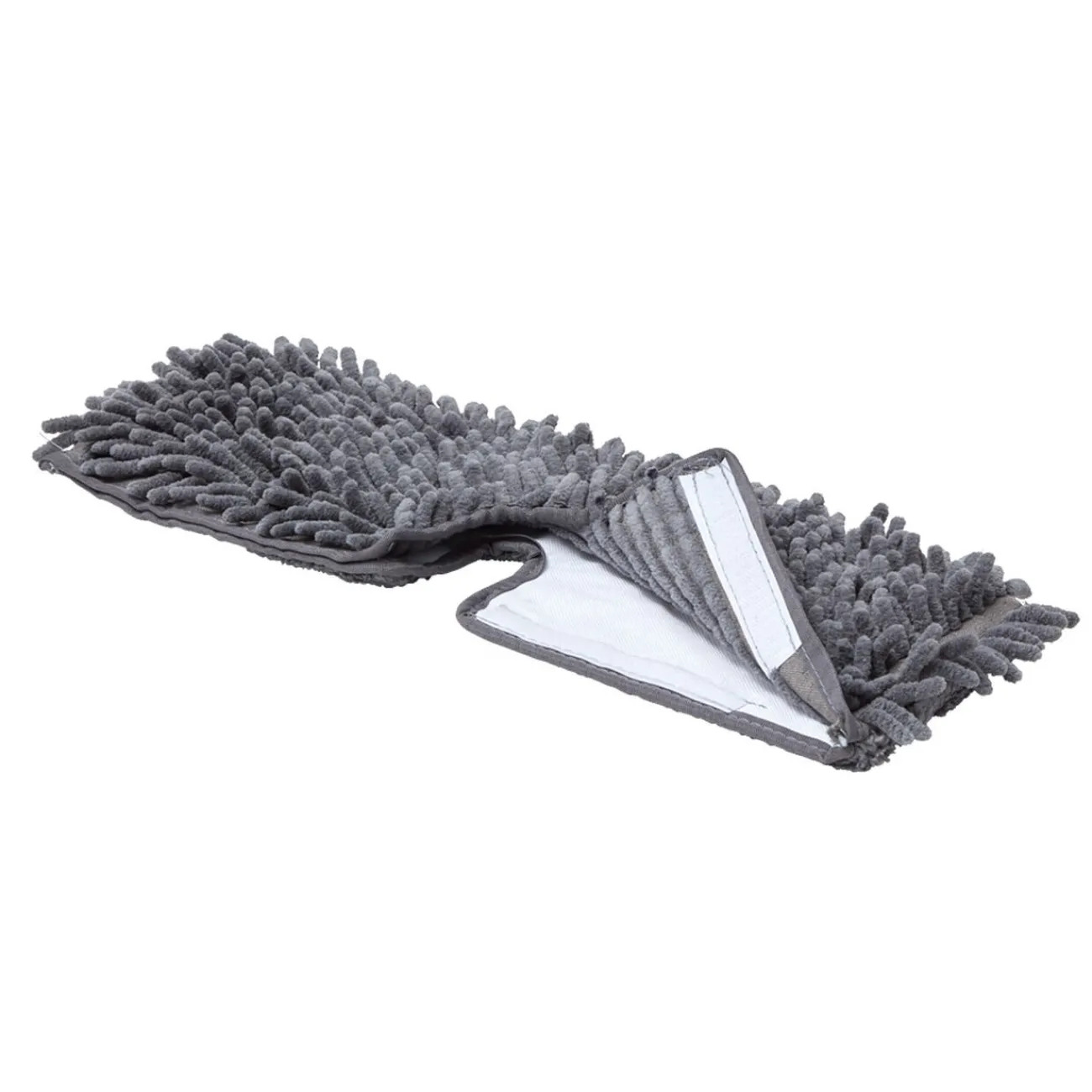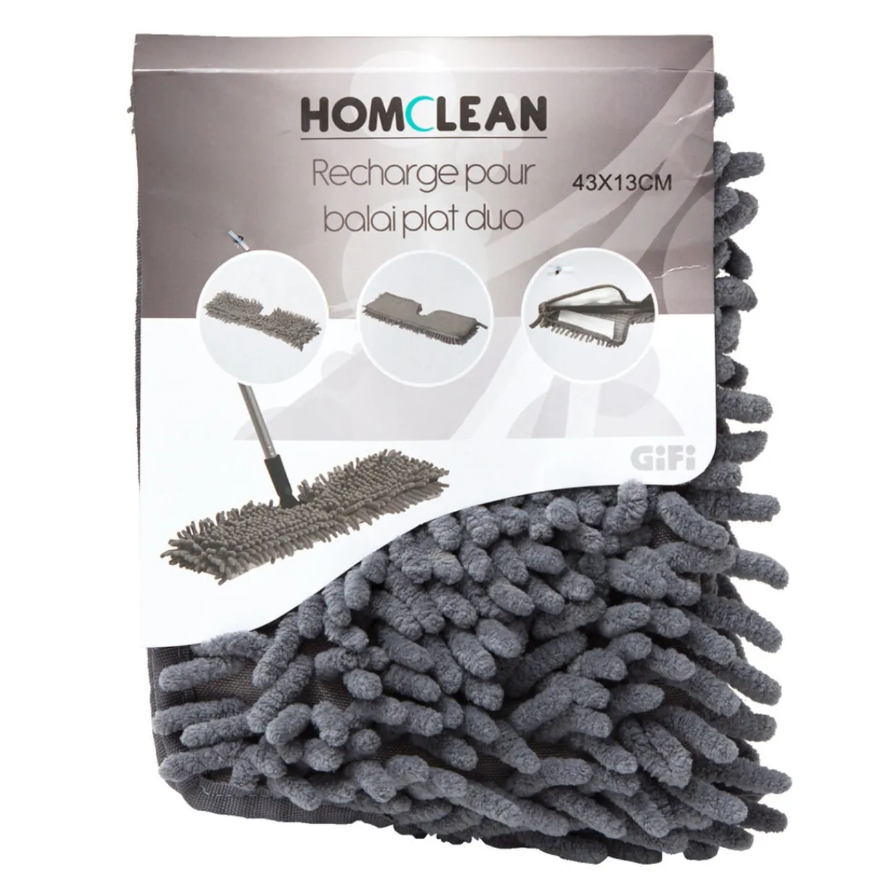 Recharge pour balai plat duo avec 2 faces : 1 chenille et 1 microfibre.