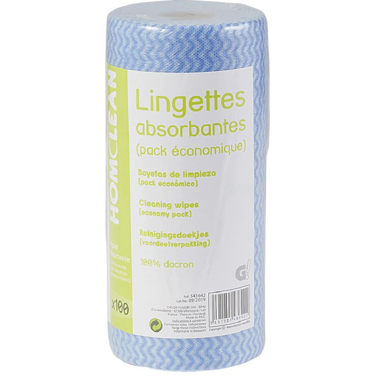 Rouleau de 100 lingettes absorbantes.