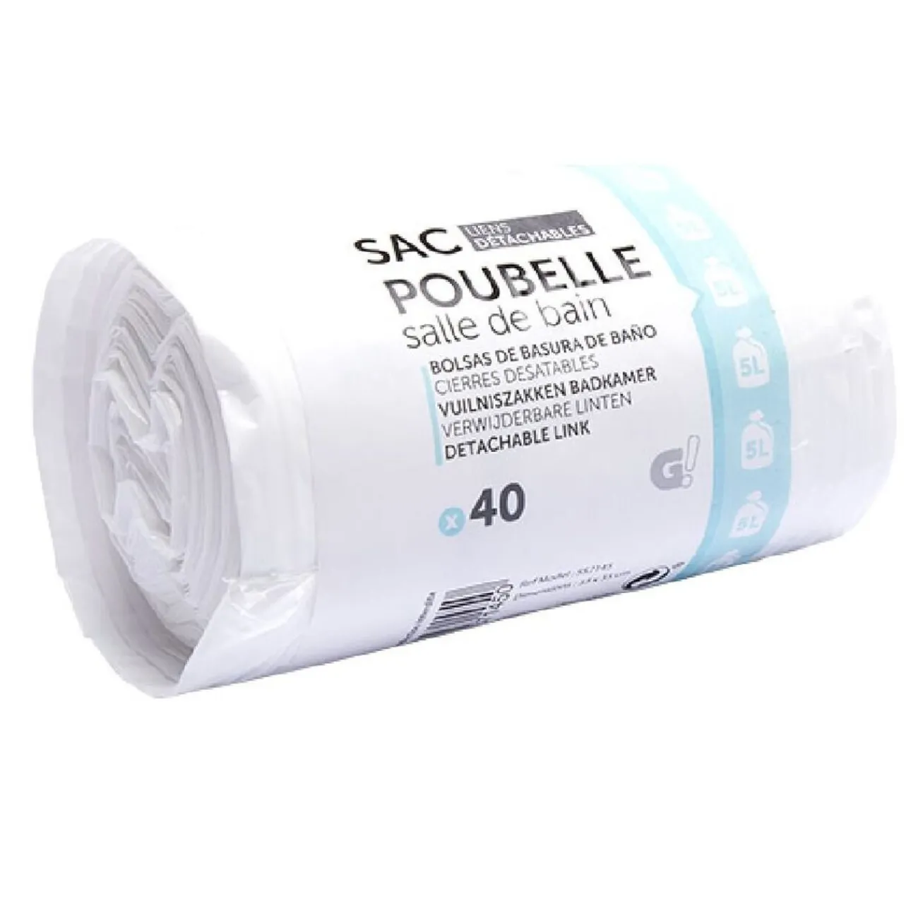 Lot de 40 sacs poubelle de 5L avec lien, coloris blanc.