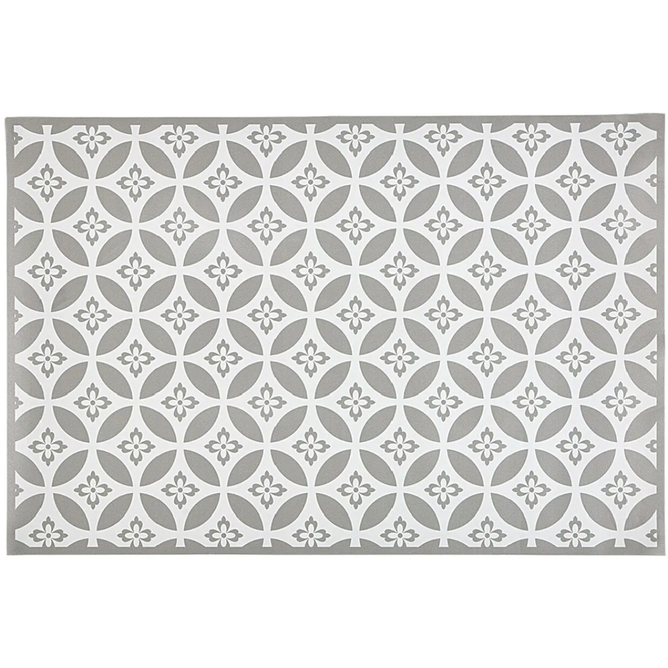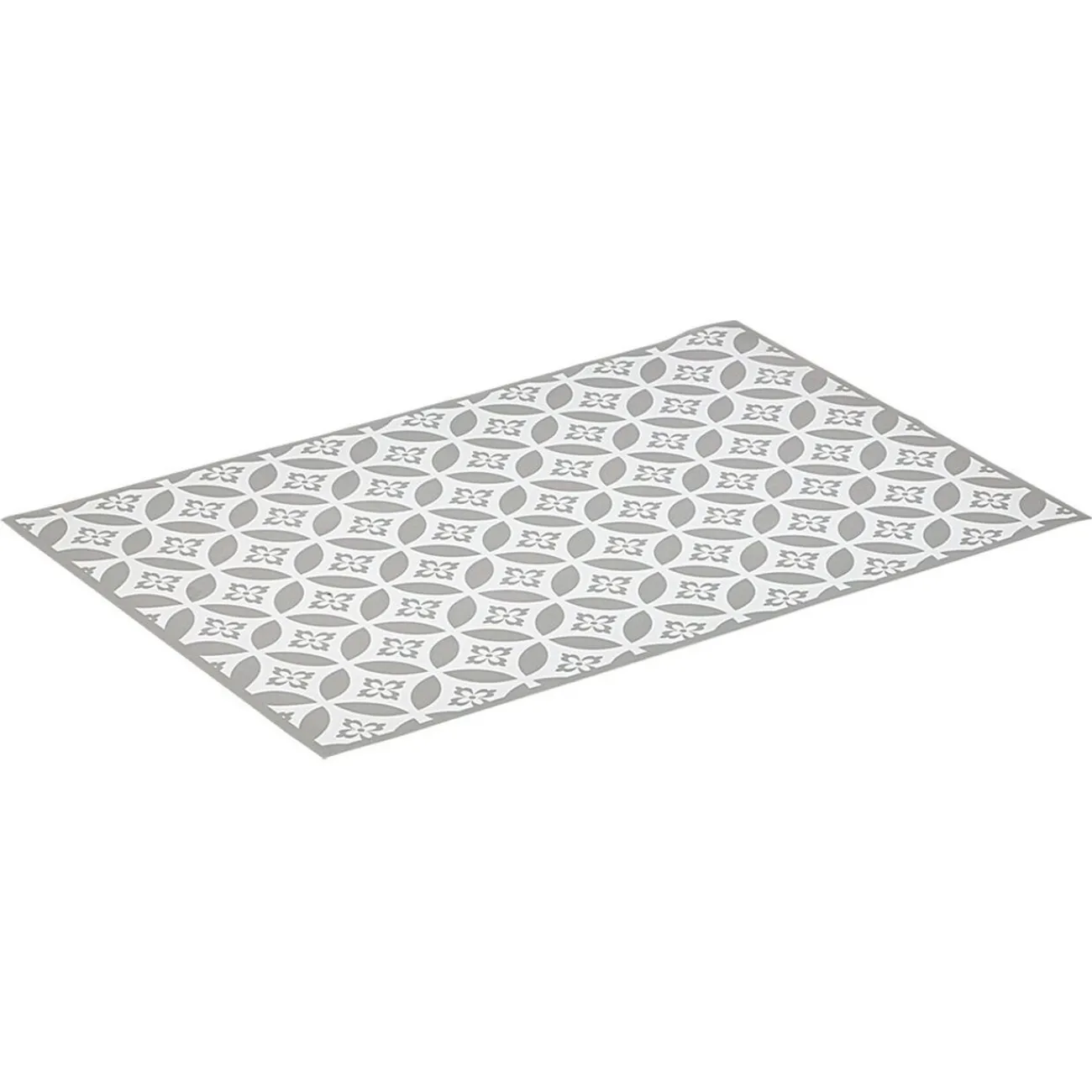Tapis de cuisine en vinyle rectangulaire imprimé rosace blanc et gris.