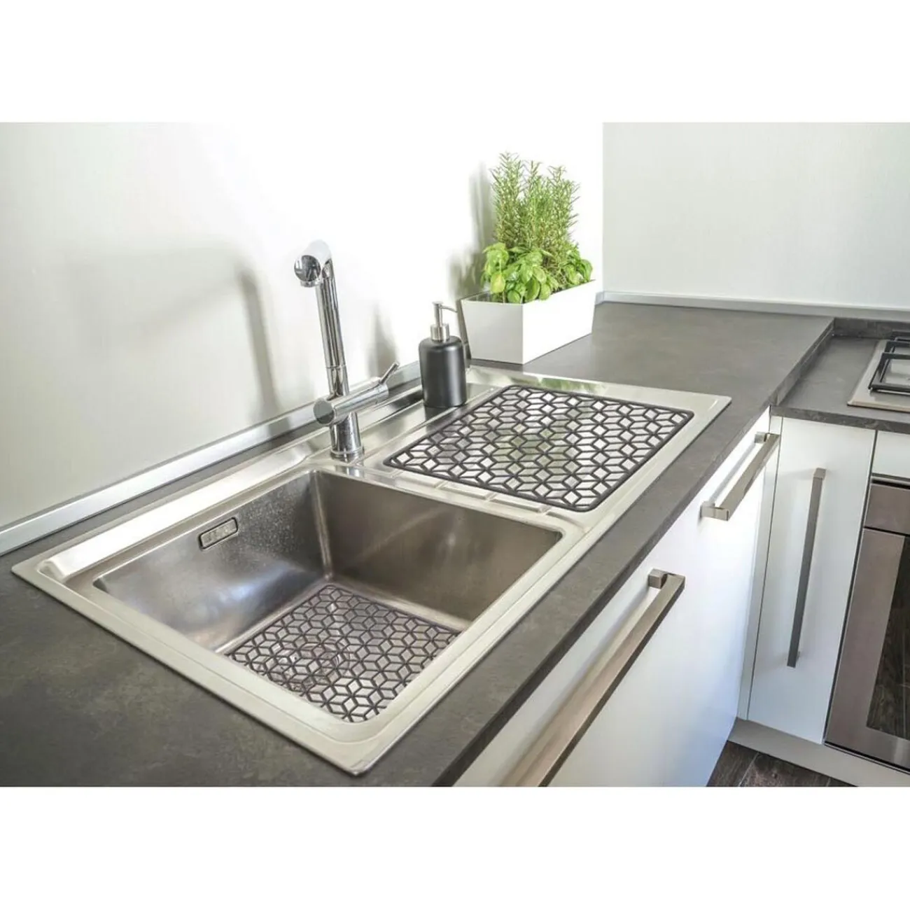 Ce tapis d’évier rectangulaire de couleur grise sera idéal pour laisser égoutter votre vaisselle.