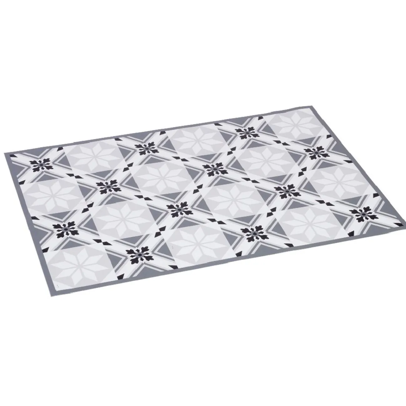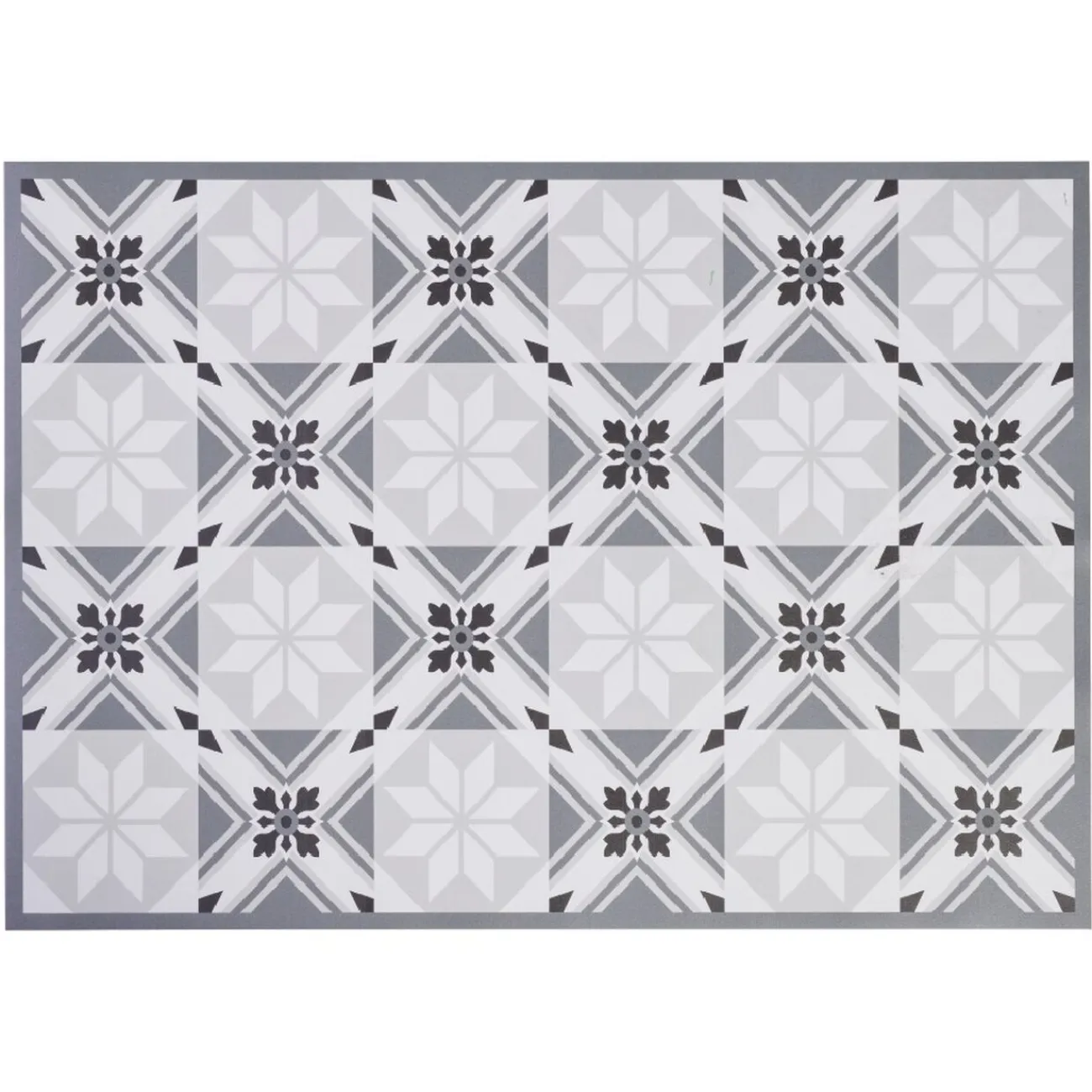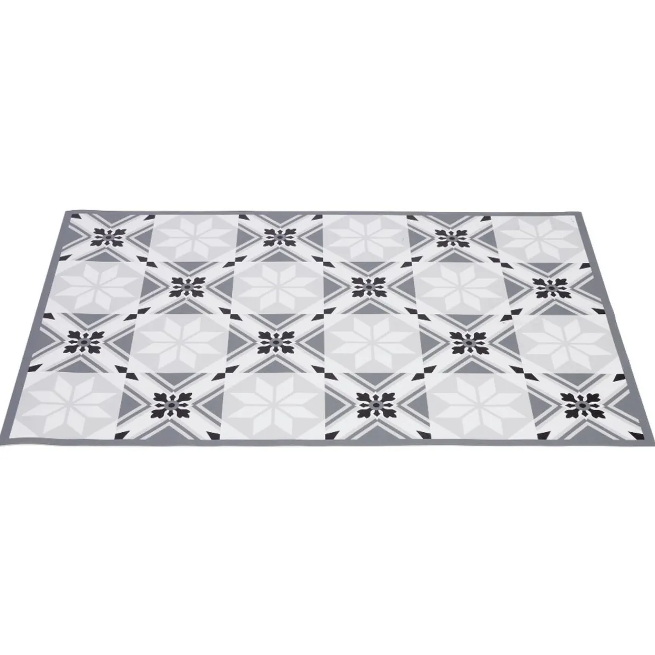Ce tapis rectangulaire en vinyle déco carreau de ciment convient aussi bien pour l’intérieur que pour l’extérieur.