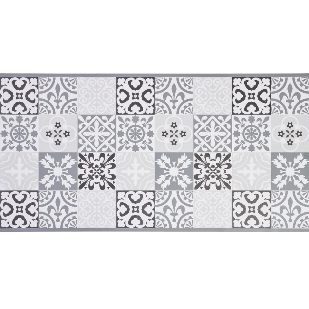 Ce tapis rectangulaire en vinyle déco carreau de ciment convient aussi bien pour l’intérieur que pour l’extérieur.