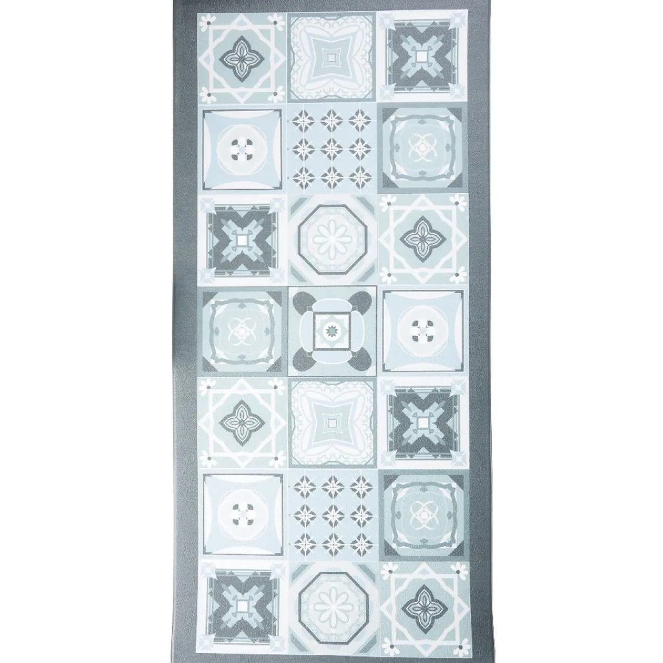 Antidérapant et déperlant, ce tapis mémoire de forme à motif carreau de ciment gris apportera une jolie touche tendance et déco à votre cuisine ou votre entrée.