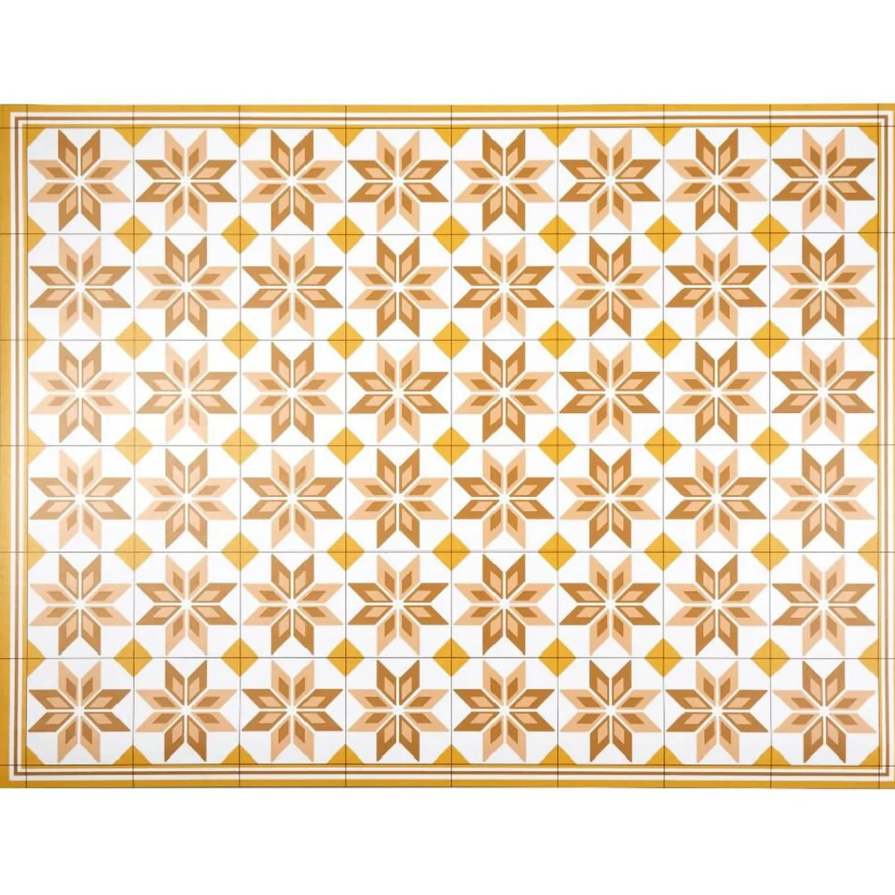 Ce tapis rectangulaire en vinyle jaune et blanc à motifs carreaux de ciment est idéal pour le parterre de votre cuisine. En plus d’être facile d’entretien avec un coup d’éponge, il apportera une réelle touche déco à votre pièce.