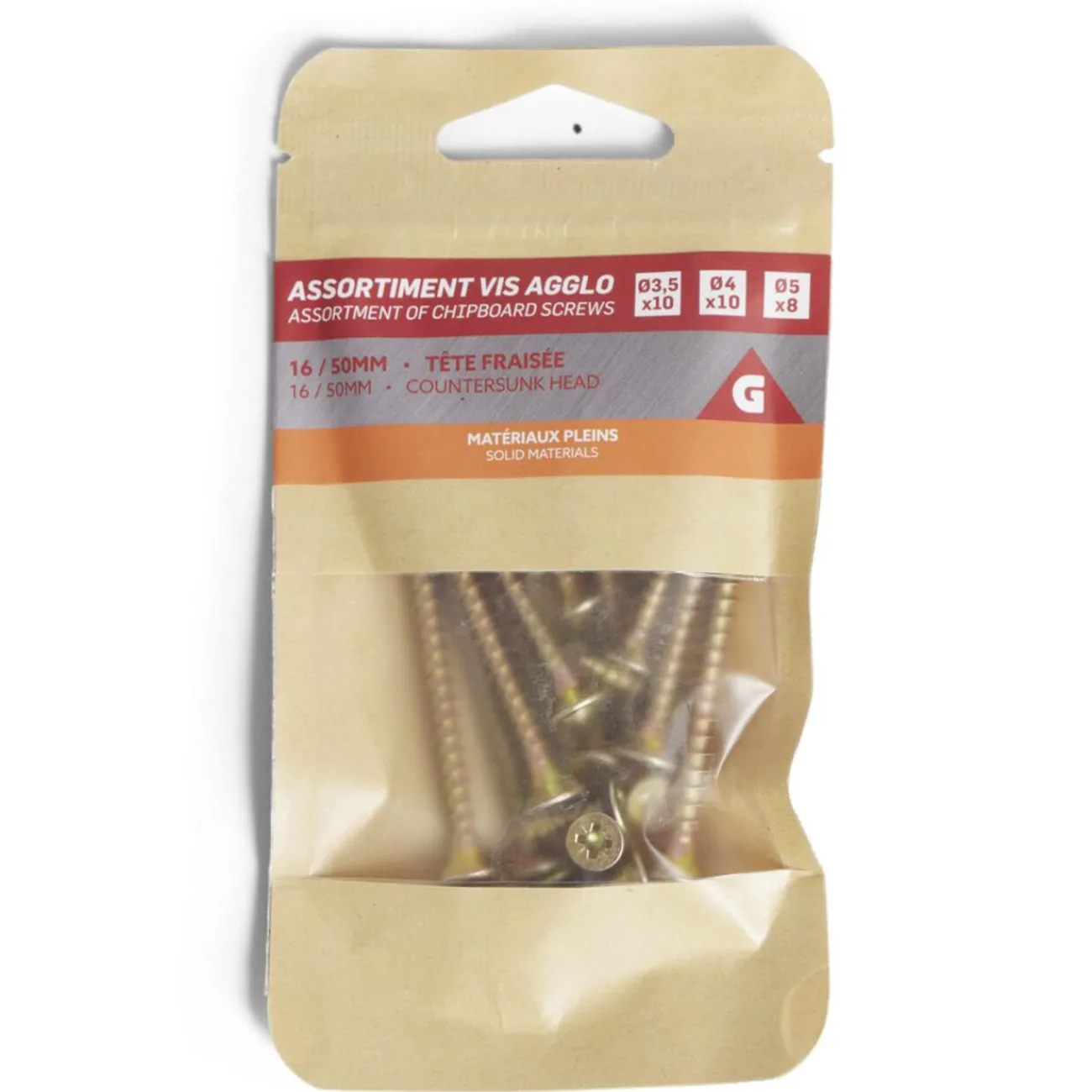 Assortiment de vis à tête fraisée 16/50 mm en 3 diamètres :
