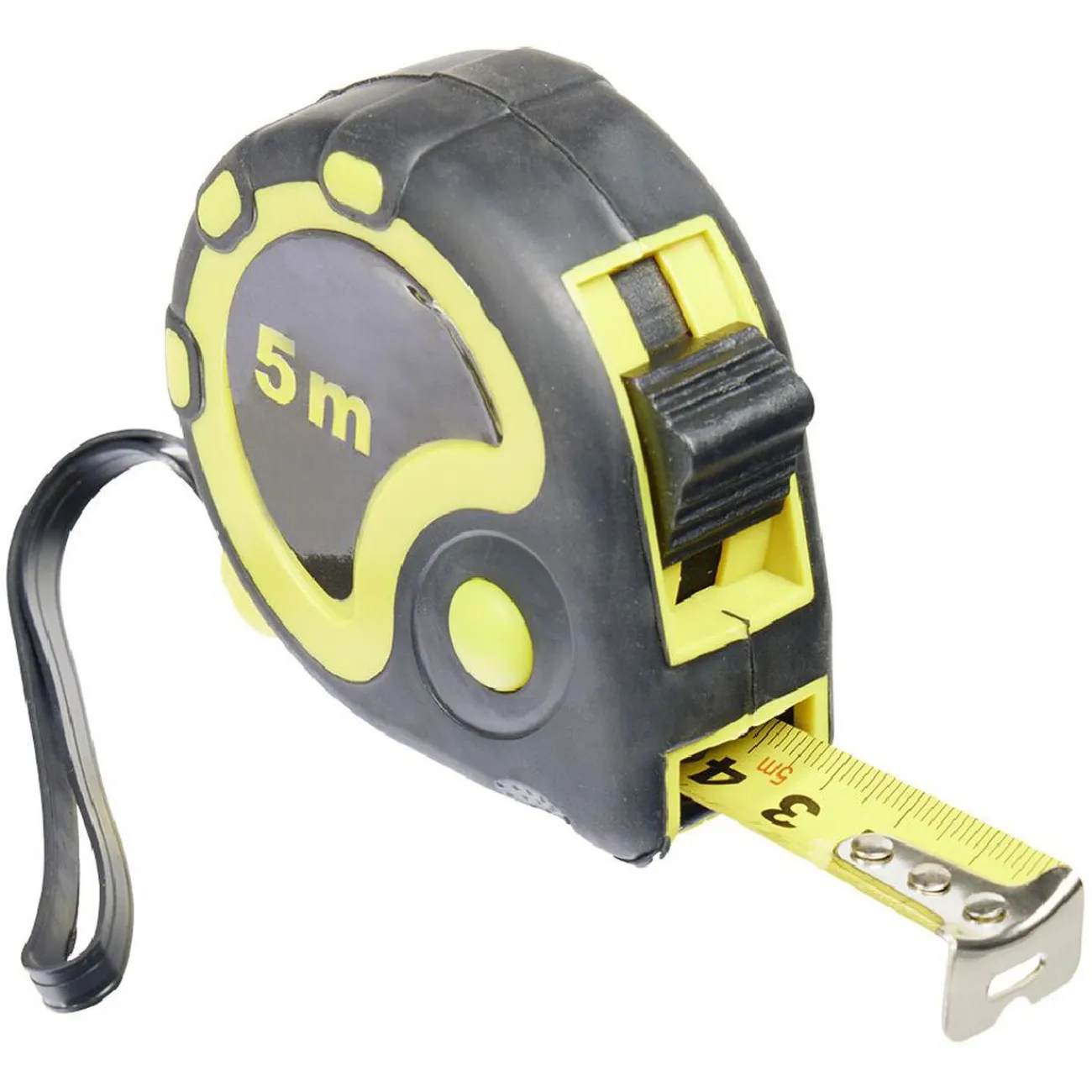 Mètre noir et jaune d’une longueur de 5 mètres.