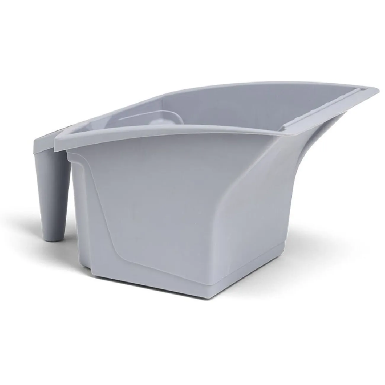 Ce bac à peinture en plastique gris avec poignée est un accessoire pratique et fonctionnel pour les projets de peinture.