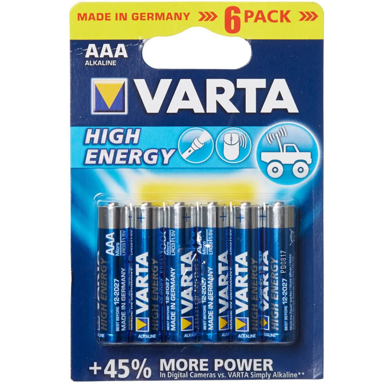 Lot de 6 piles LR03 type AAA, alcaline varta.