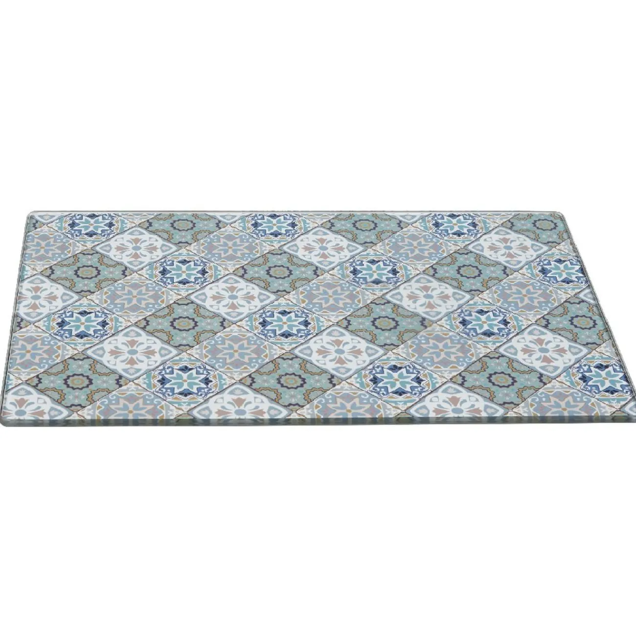 2 en 1, cette planche à découper en bambou comprend aussi 1 plateau de service en verre design carreau de ciment.