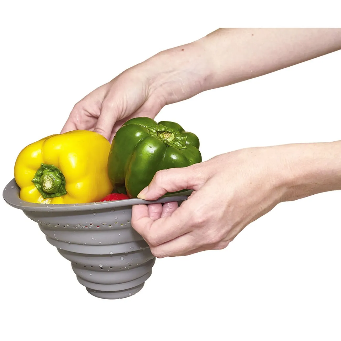 Cette planche 2 en 1 vous permet d’un côté de découper vos aliments et de l’autre de les égoutter grâce à la passoire rétractable en silicone.