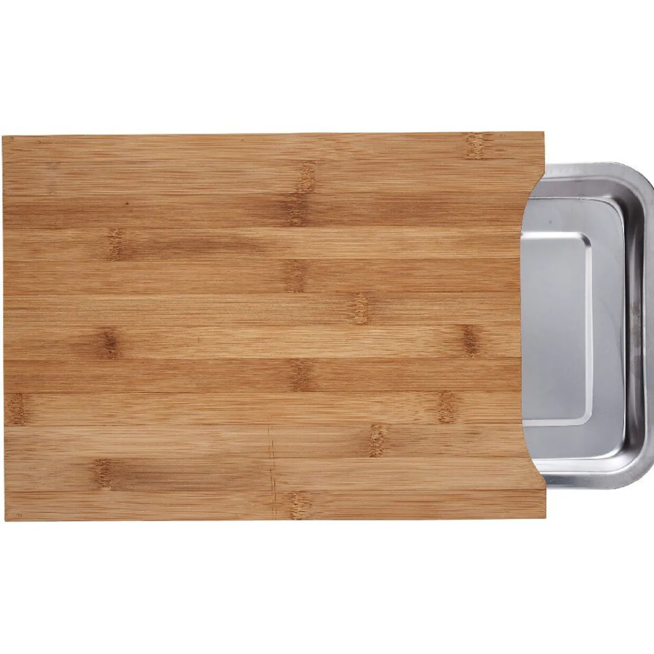 Planche à découper en bambou avec plateau en inox.
