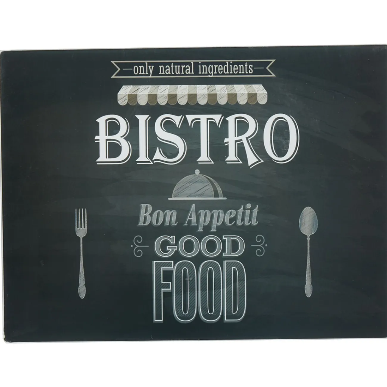 Planche à découper en verre noir design bistrot, idéal pour apporter une décoration rétro à votre cusine.