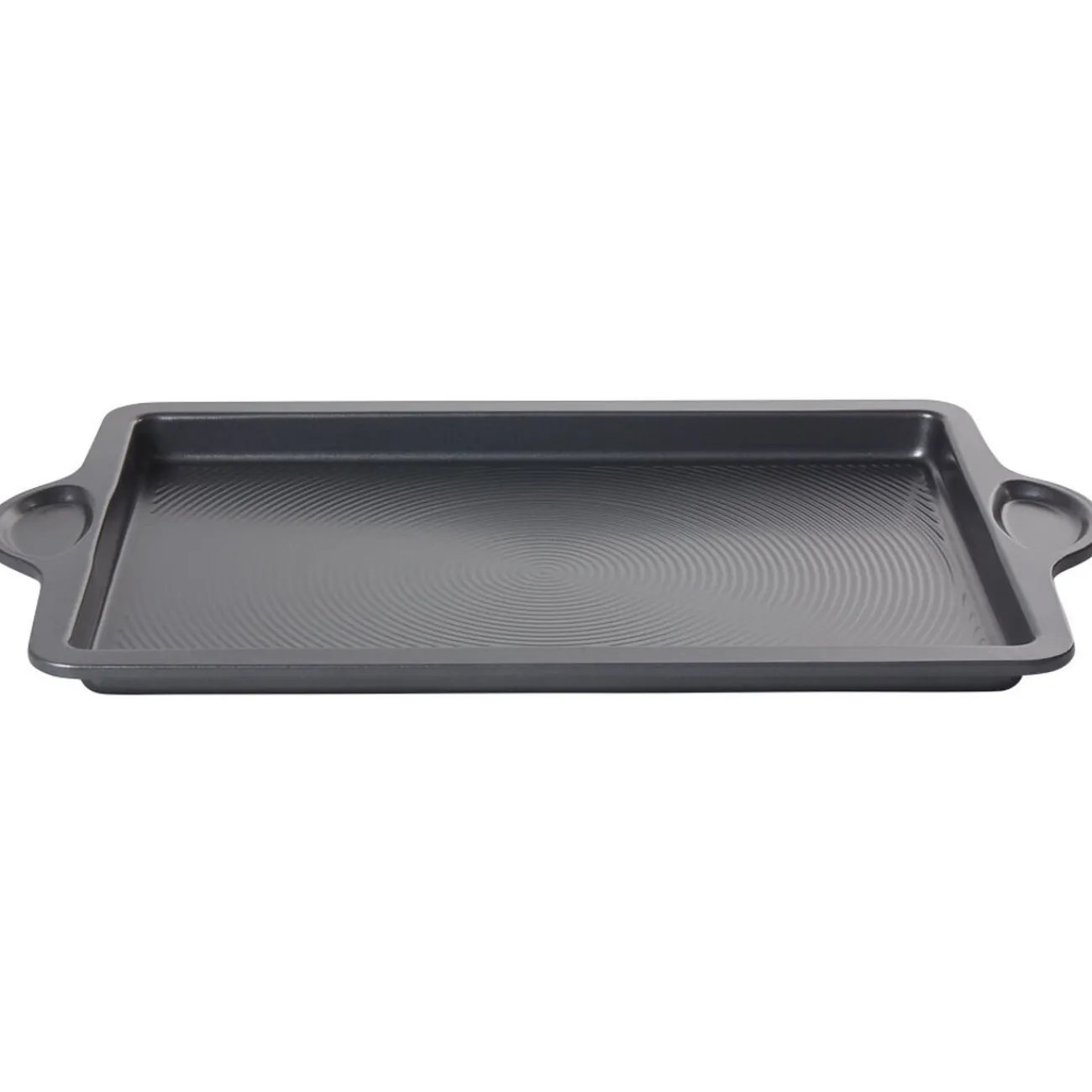 Pratique, cette plaque de cuisson en métal gris comprend un revêtement à fond texturé pour un démoulage facile de vos pâtisseries