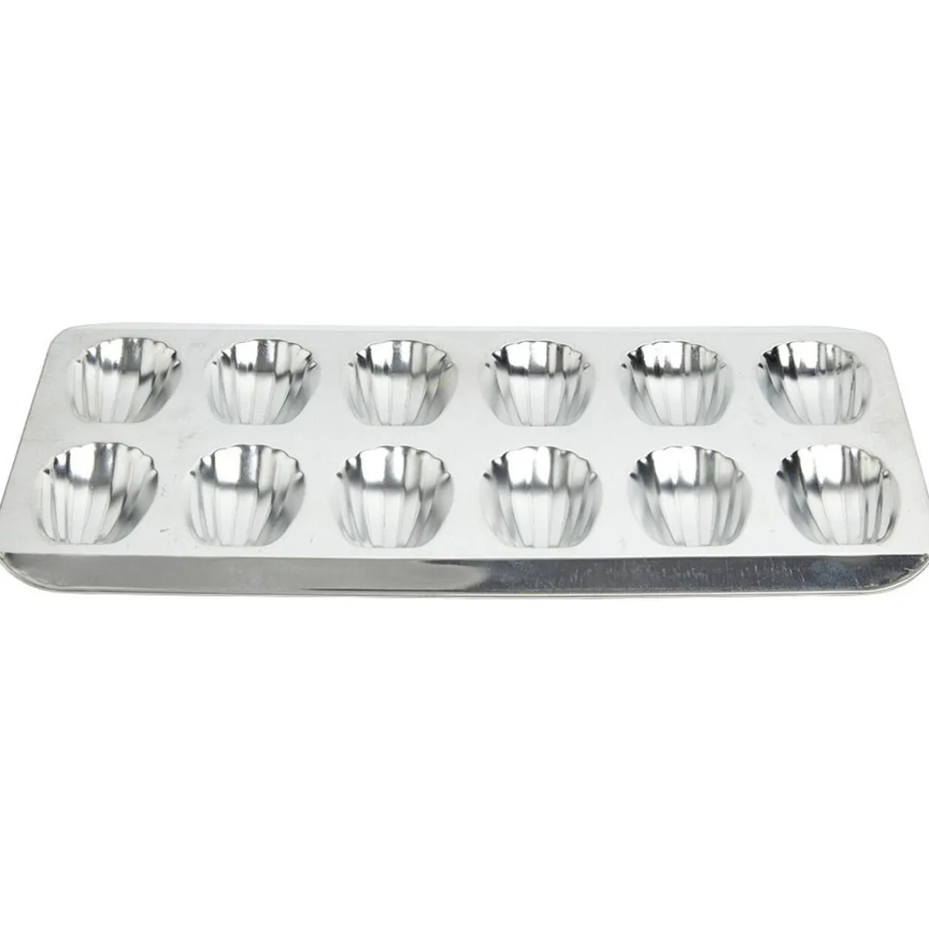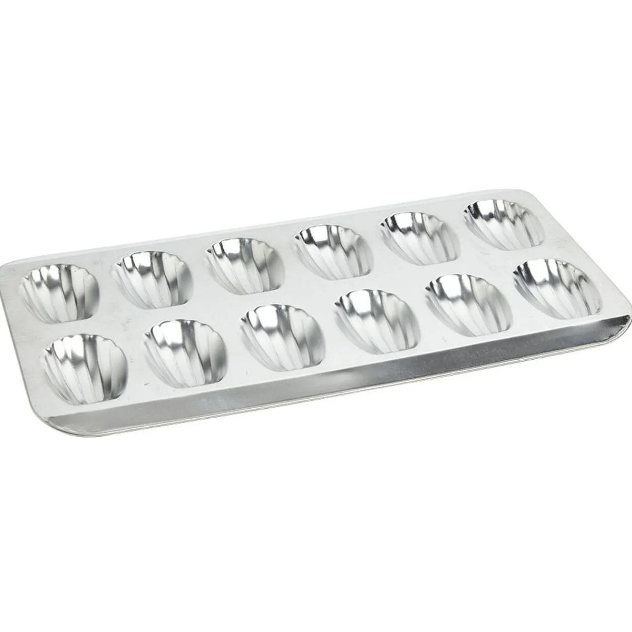 Plaque de moulage en métal pour 12 madeleines, idéale pour réaliser de délicieuses madeleines et régaler vos convives.