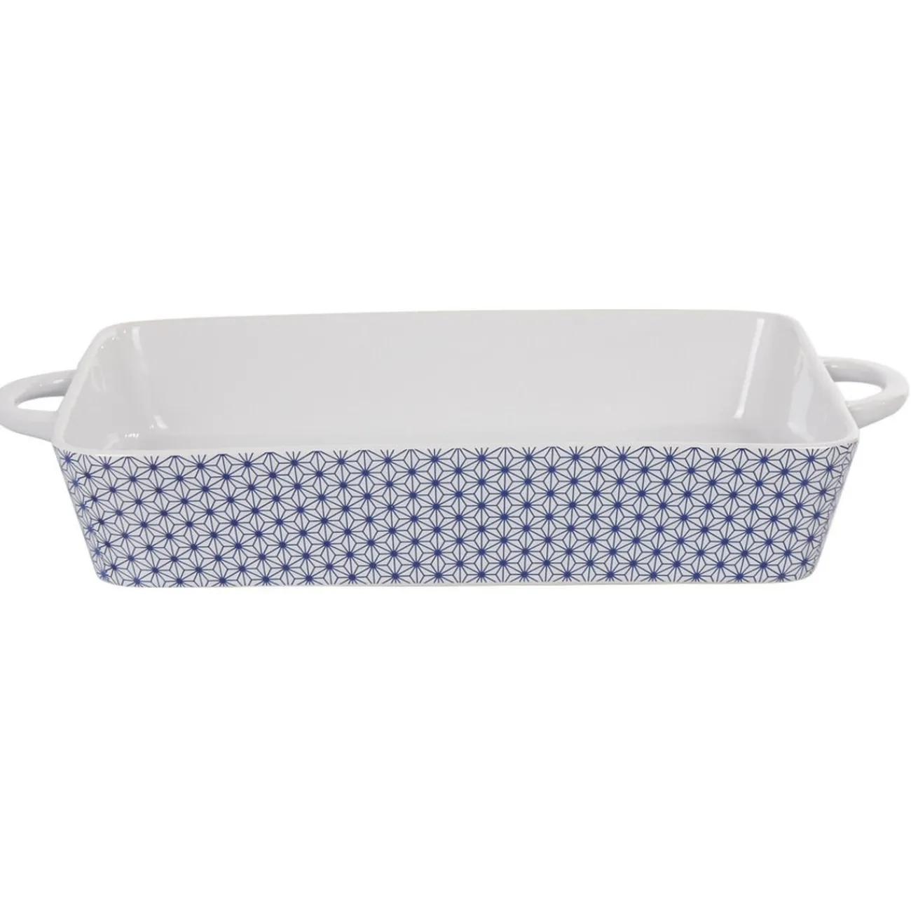 Ce plat à four décoré de motifs bleu foncé conviendra aussi bien pour le service et apportera une touche tendance à la décoration de votre table.