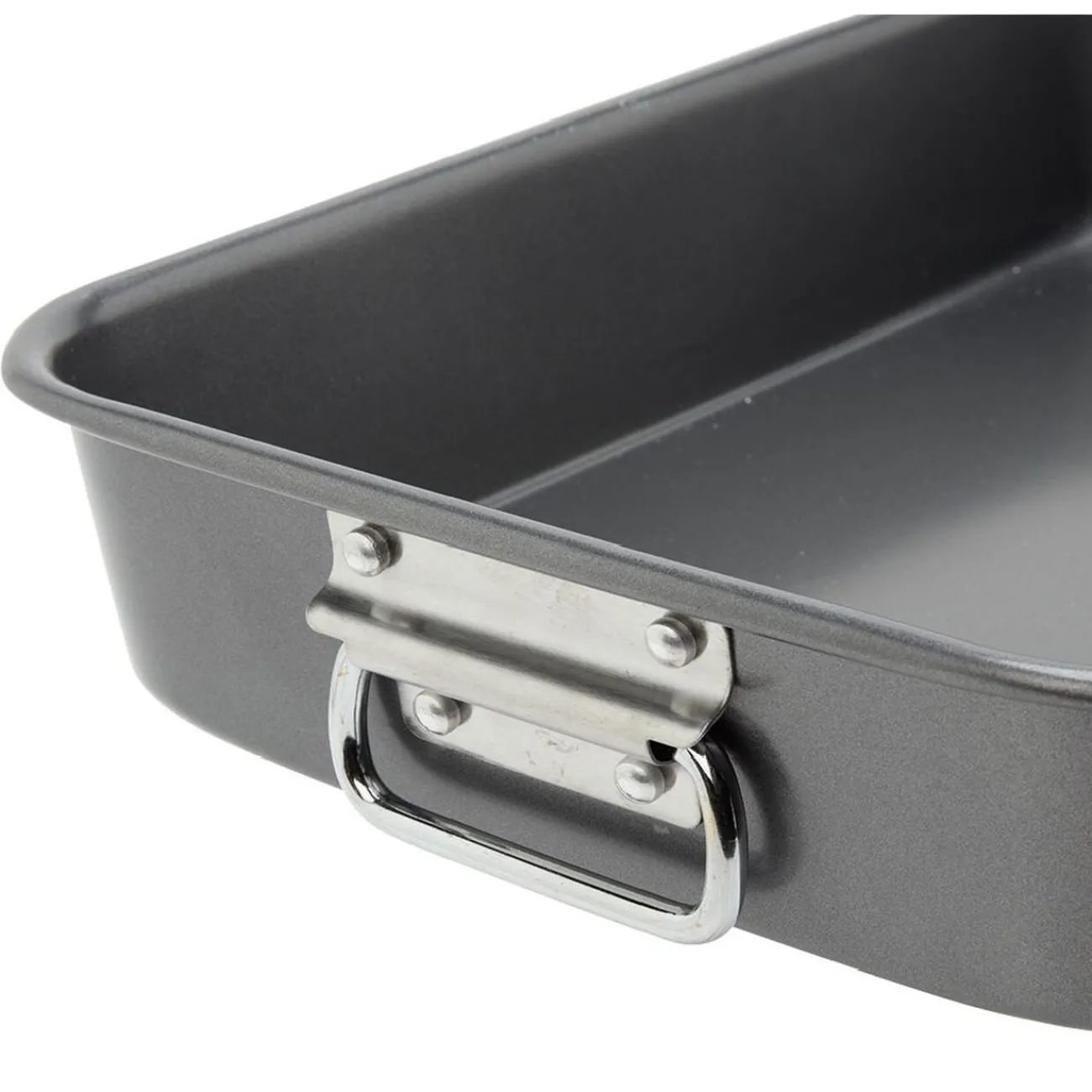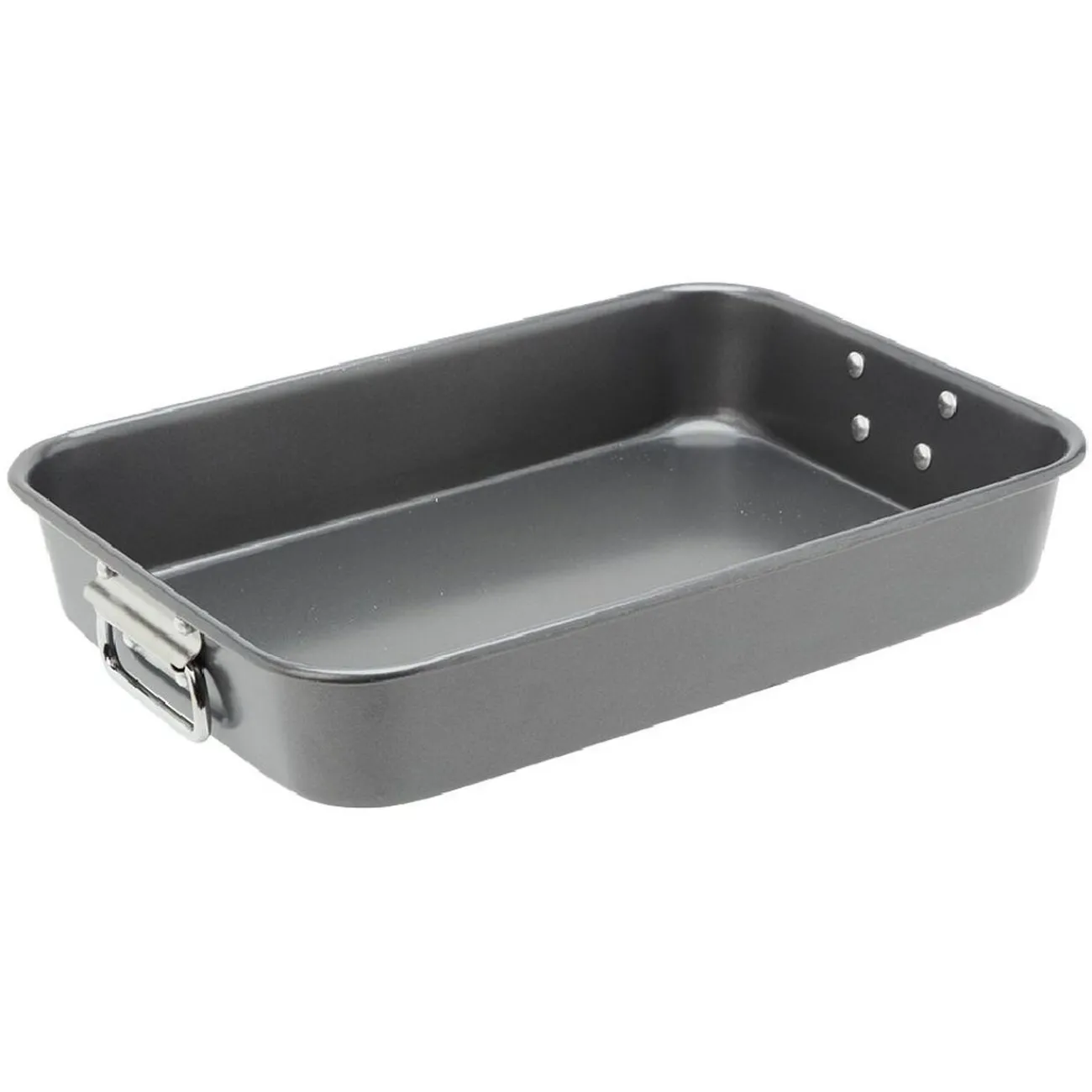 Plateau rectangulaire XXL gris en acier antiadhésif et inoxydable.