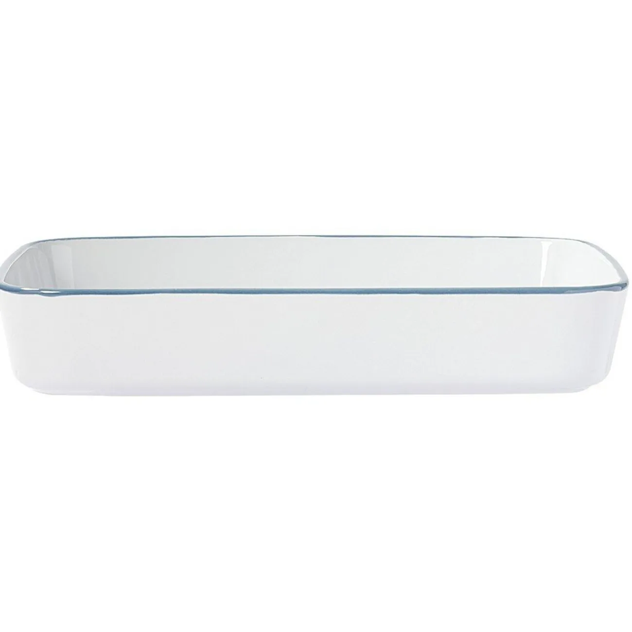 Préparez de délicieux repas à l’aide de ces deux plats rectangulaires blancs avec bordure bleue.