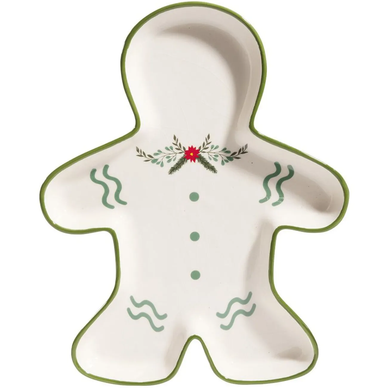 Plat de service en forme de bonhomme de pain d’épices, idéal pour présenter vos délicieux plats et gâteaux en période de Noël.