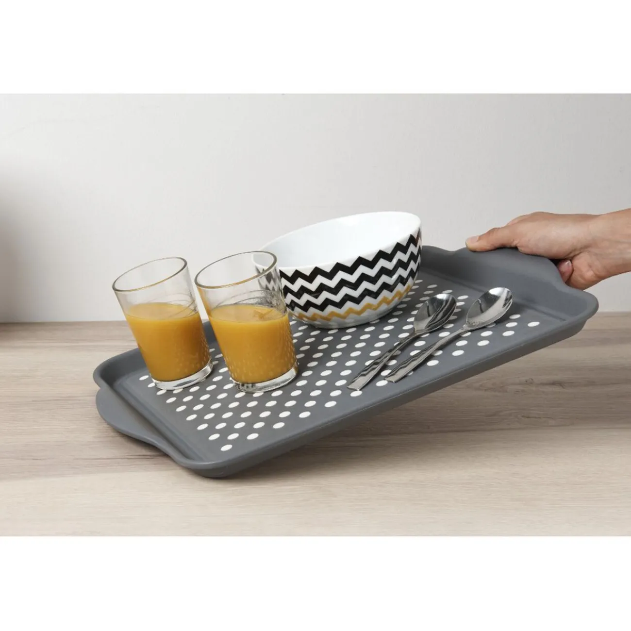 Ce plateau antidérapant avec poignées sera idéal pour éviter toutes catastrophes lorsque vous transporter à boire ou à manger.