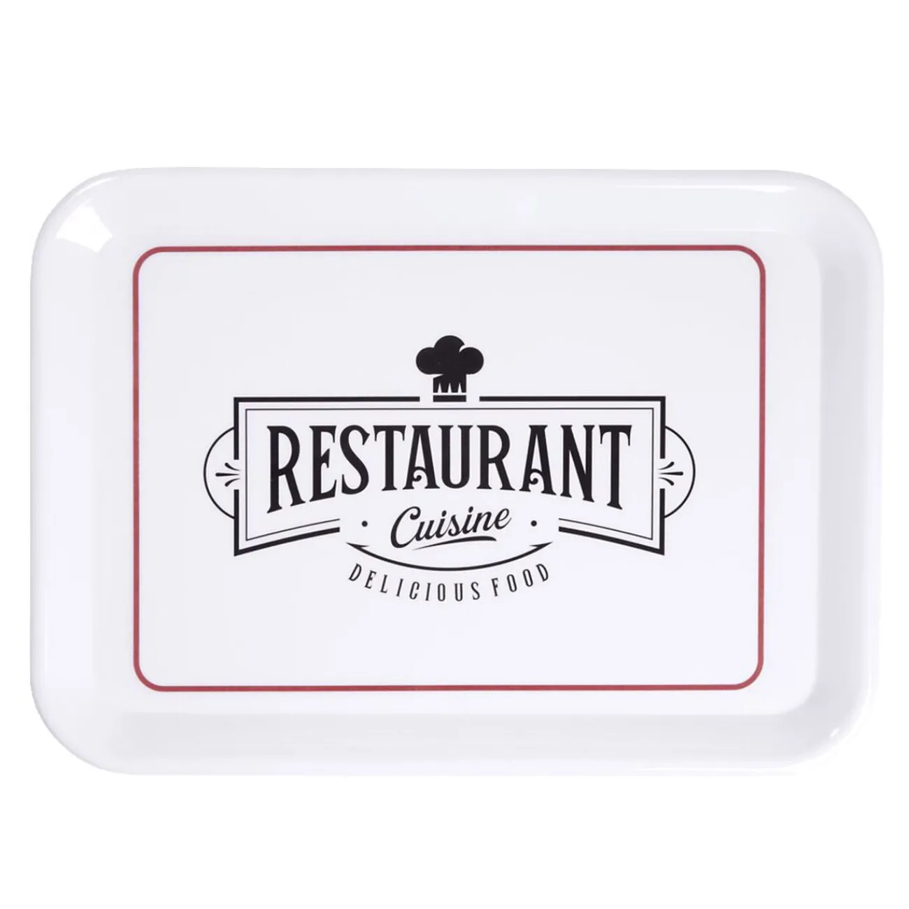 Faites l’expérience de l’authenticité avec ce plateau rectangulaire inspiré des brasseries, décoré d’une inscription « restaurant cuisine » et d’un liseré rouge.
