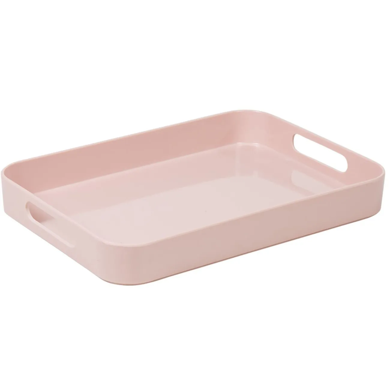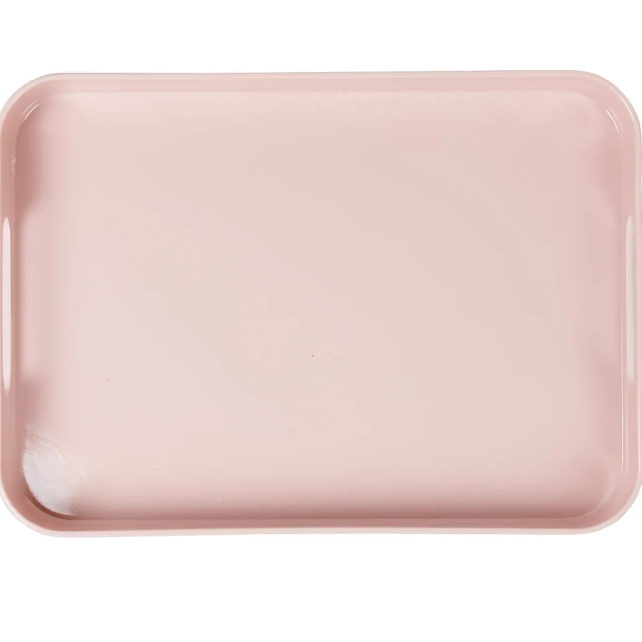 Plateau rectangulaire en plastique mélaminé rose, un design épuré idéal pour le service au quotidien.