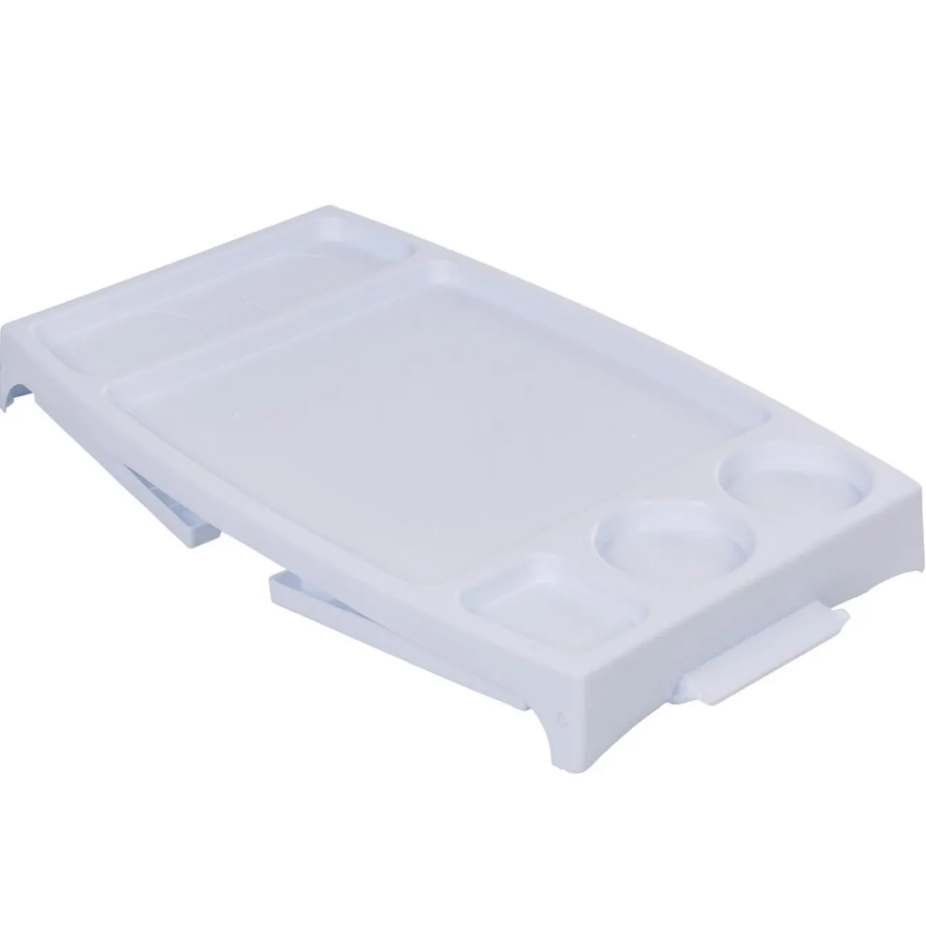 C’est possible grâce à ce plateau pliable sur pieds blanc en plastique.