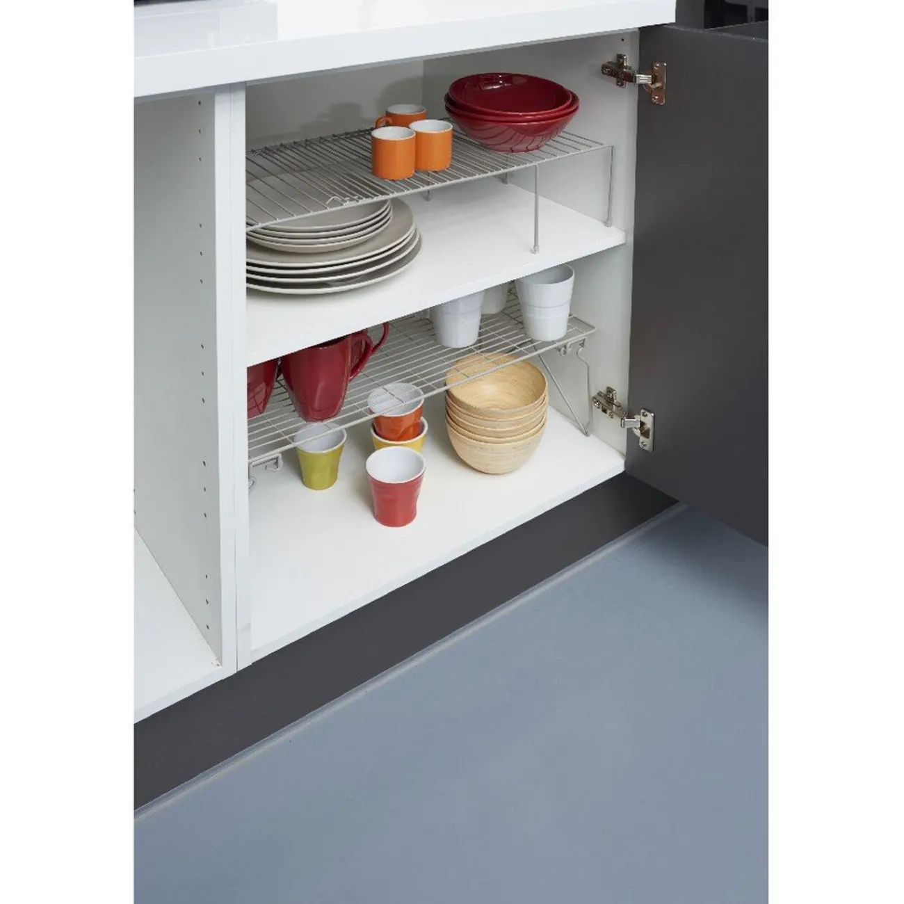 Utile en cuisine en tant qu’étagère dans un meuble ou près d’un évier.