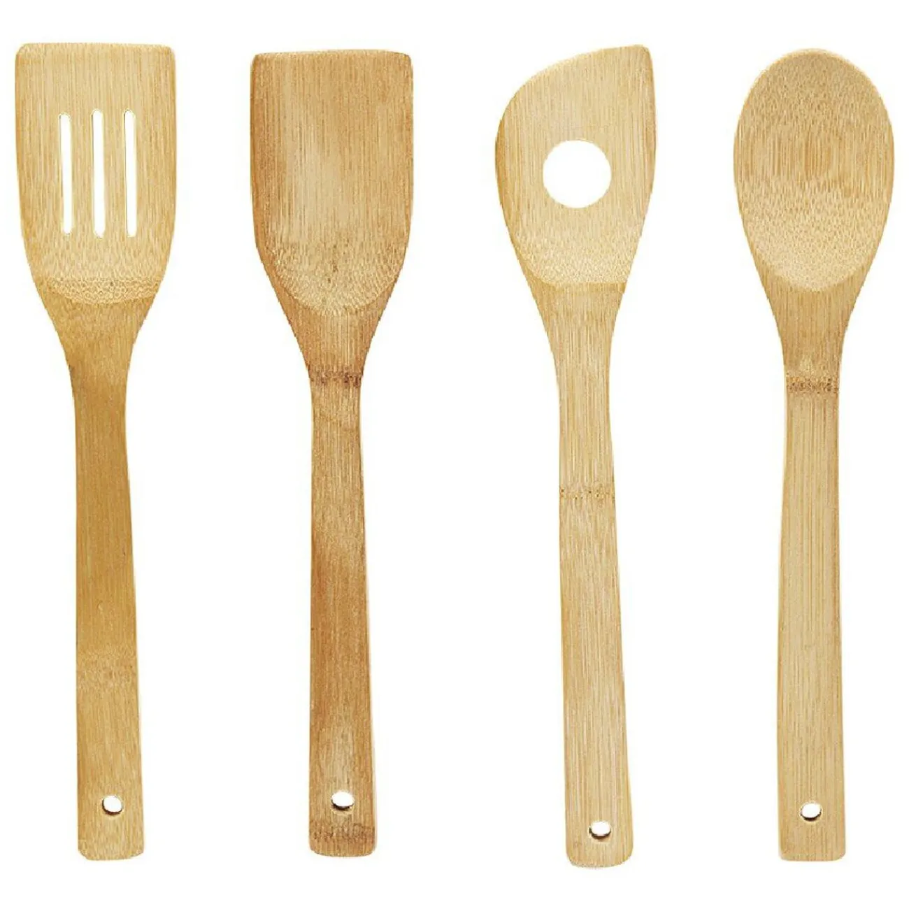 Set de 4 ustensiles de cuisine et pot assorti entièrement conçu en bambou naturel.