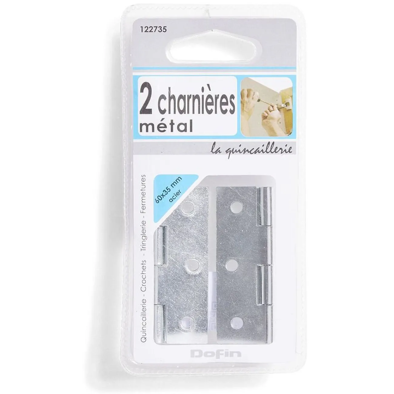 Lot de 2 charnières en acier de 60×35 mm pour meubles et portes légères.