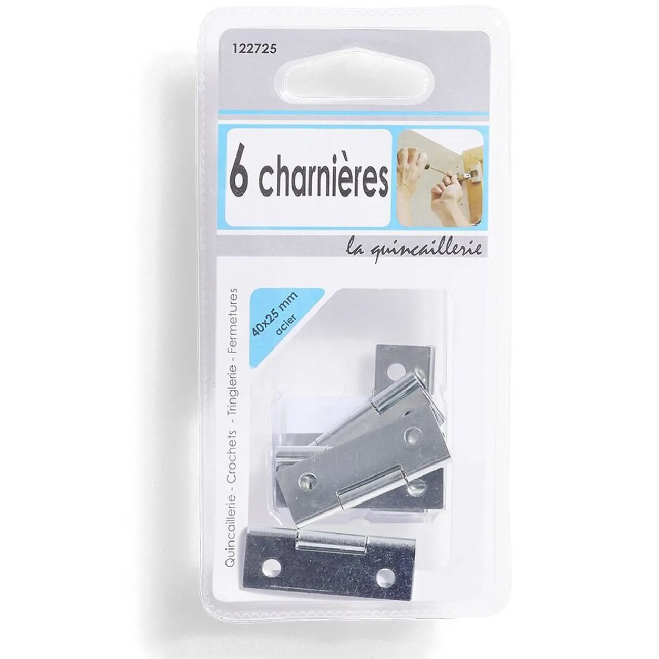 Lot de 6 charnières en acier de 40×25 mm pour meubles et portes légères.