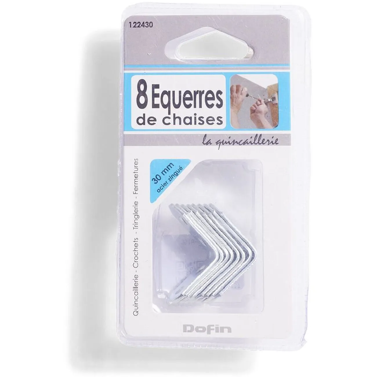 Lot de 8 équerres de chaise en acier zingué L.30 mm.