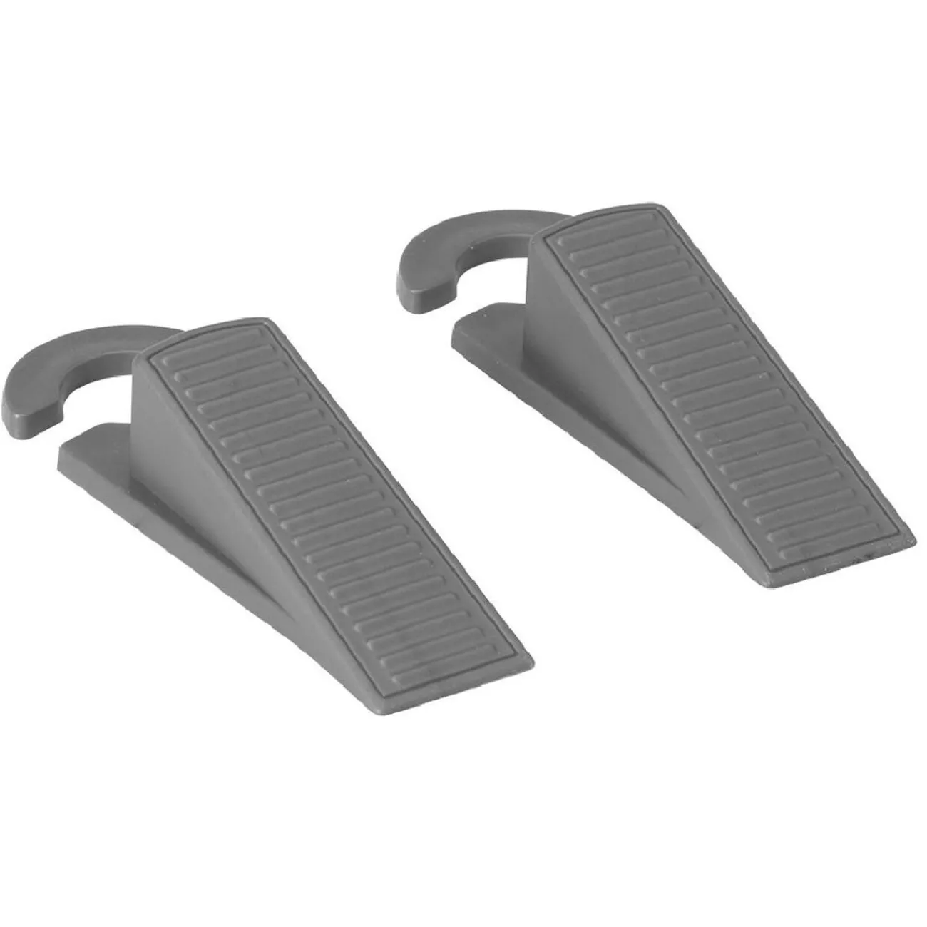 Lot de 2 bloc-porte avec crochets pour le suspendre à la poignée lorsqu’il n’est pas utilisé.