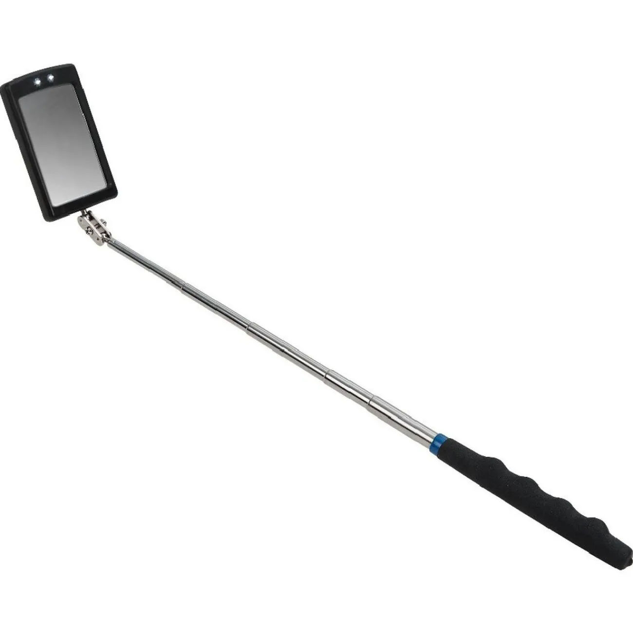 Inspectez les zones sombres et difficiles d’accès !0Idéal pour la mécanique, plomberie, électricité, lampe 2 LED intégrée, manche télescopique jusqu’à 86 cmFonctionne avec des piles incluses- Couleur : Noir- Dimensions : L87 x P28,5 x H5cm- Matière(s) : Polypropylene- Fonctionne avec 2 piles type XX incluses