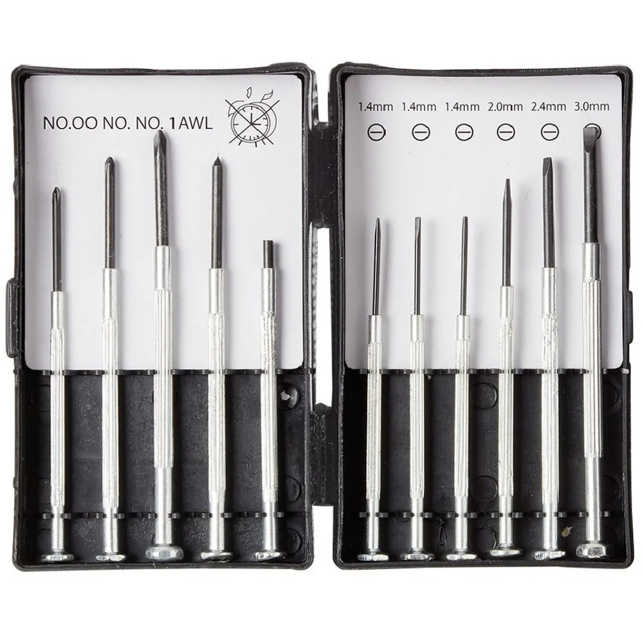 Cet étui de protection est composé de 10 tournevis de précision et une clé allen avec hauts pivotants, idéal pour travailler sur des petites vis dans des endroits difficiles à atteindre.