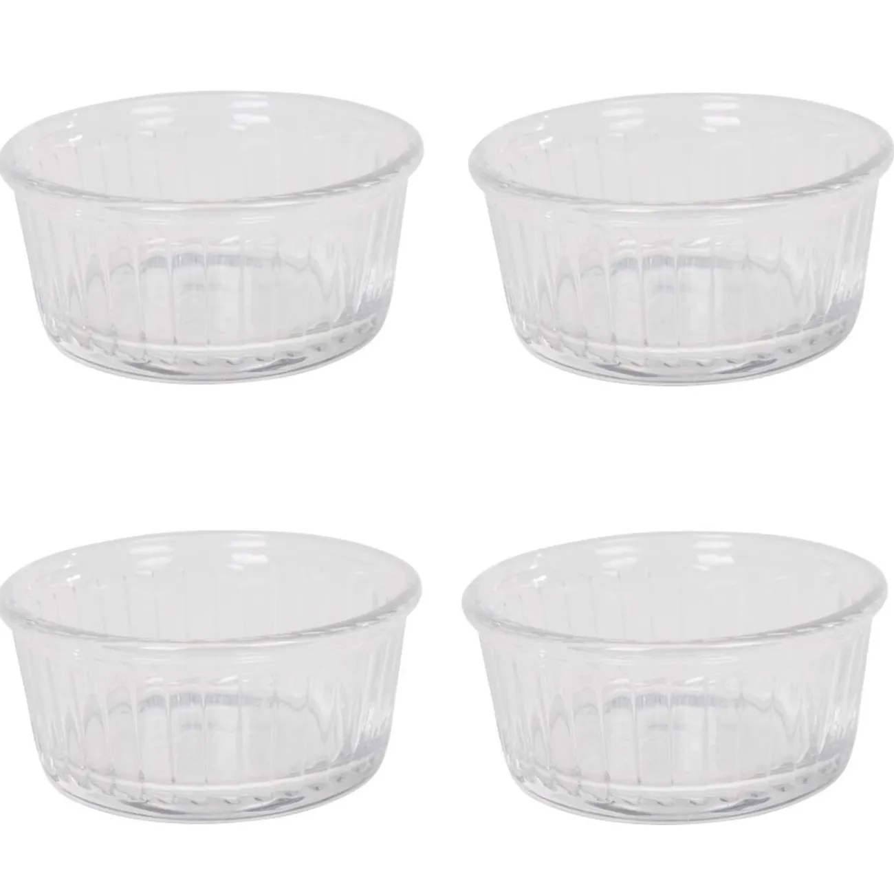 Ce lot de 4 ramequins en verre transparent vous sera très utile pour la cuisson de délicieux soufflés et autres recettes individuelles.