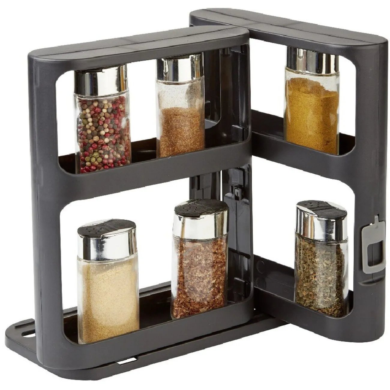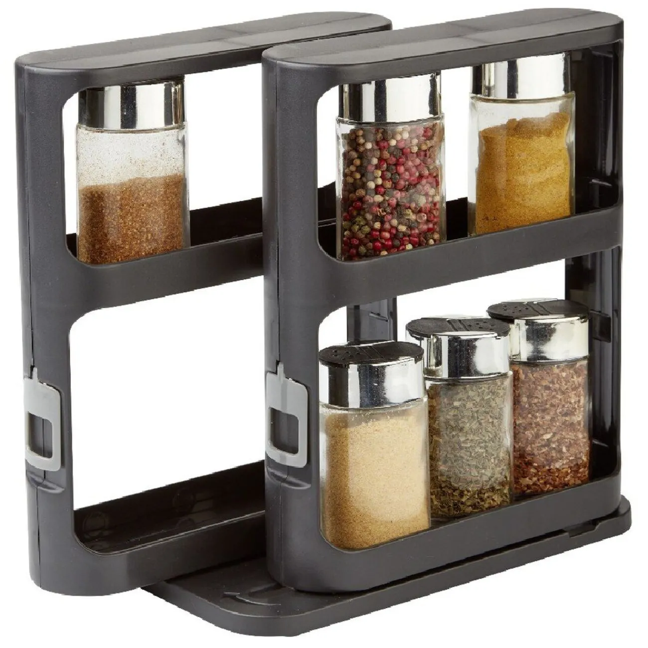 Ordonnez le rangement de vos épices avec ce double support coulissant sur 2 niveaux, soit au total 4 compartiments.