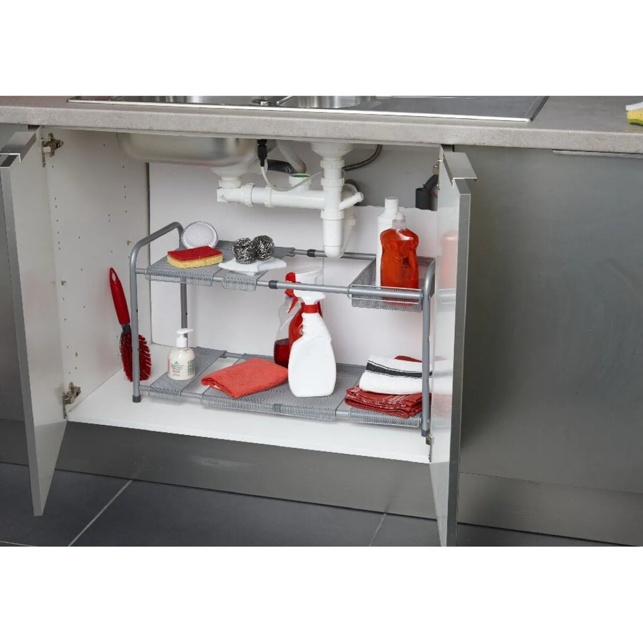 Rangement sous évier gris argenté, extensible et modulable selon vos besoins. Dim. 39,5/70x29x38 cm, acier.