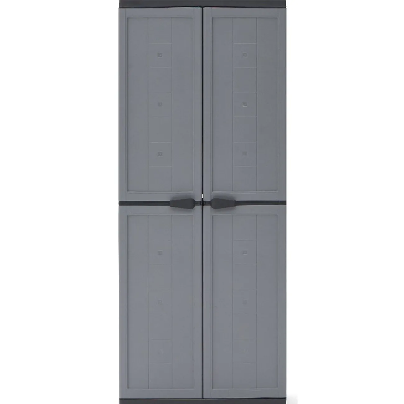 Armoire de rangement grise de la marque kis jolly, avec 3 tablettes et 2 portes.