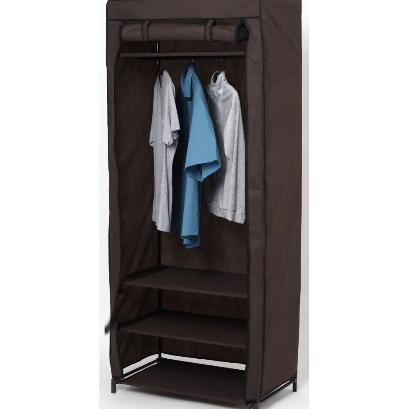 Armoire dressing marron, 1 barre de penderie et 4 étagères, dim. 75x45xh.180 cm, structure métal finition peinture polymère et tissu polyéthylène.