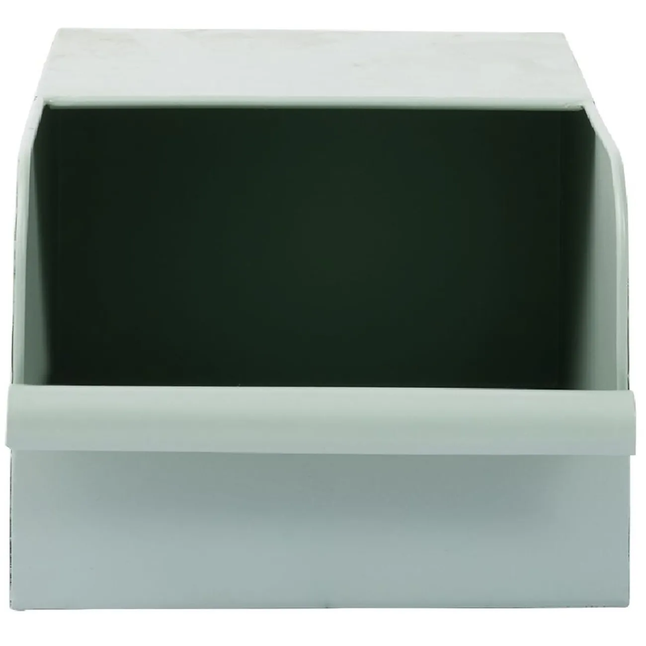 Bac de rangement rectangulaire en métal vert, idéal pour organiser votre intérieur dans un esprit rétro.