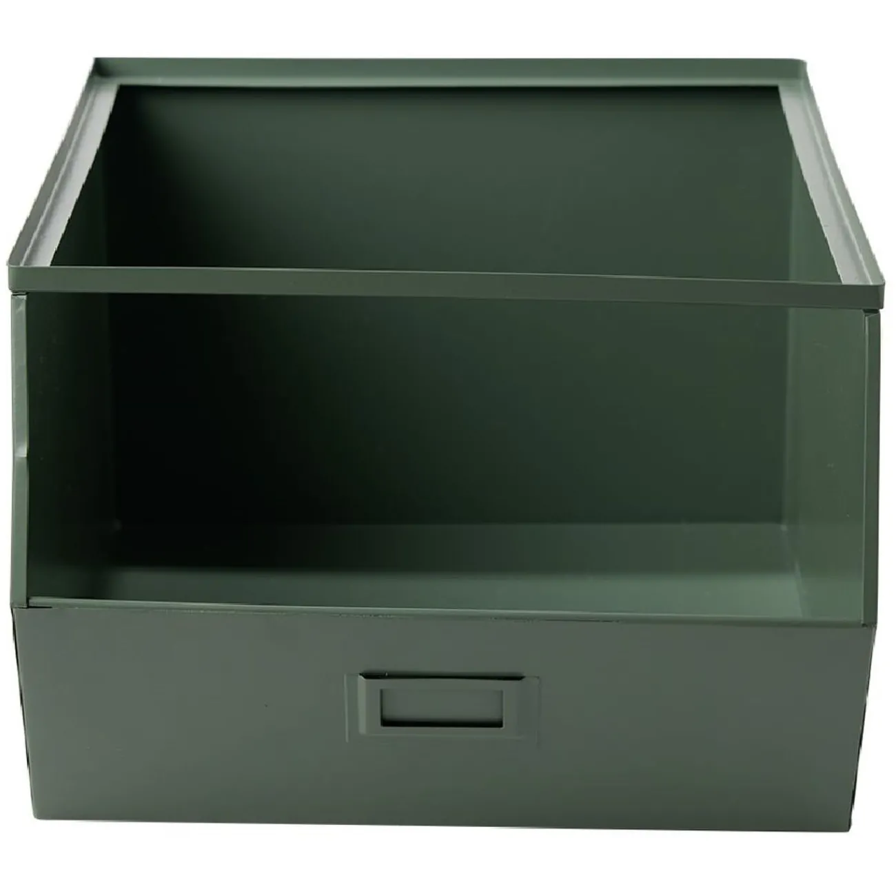 Bac de rangement superposable en métal vert, idéal pour organiser votre intérieur dans un esprit rétro.