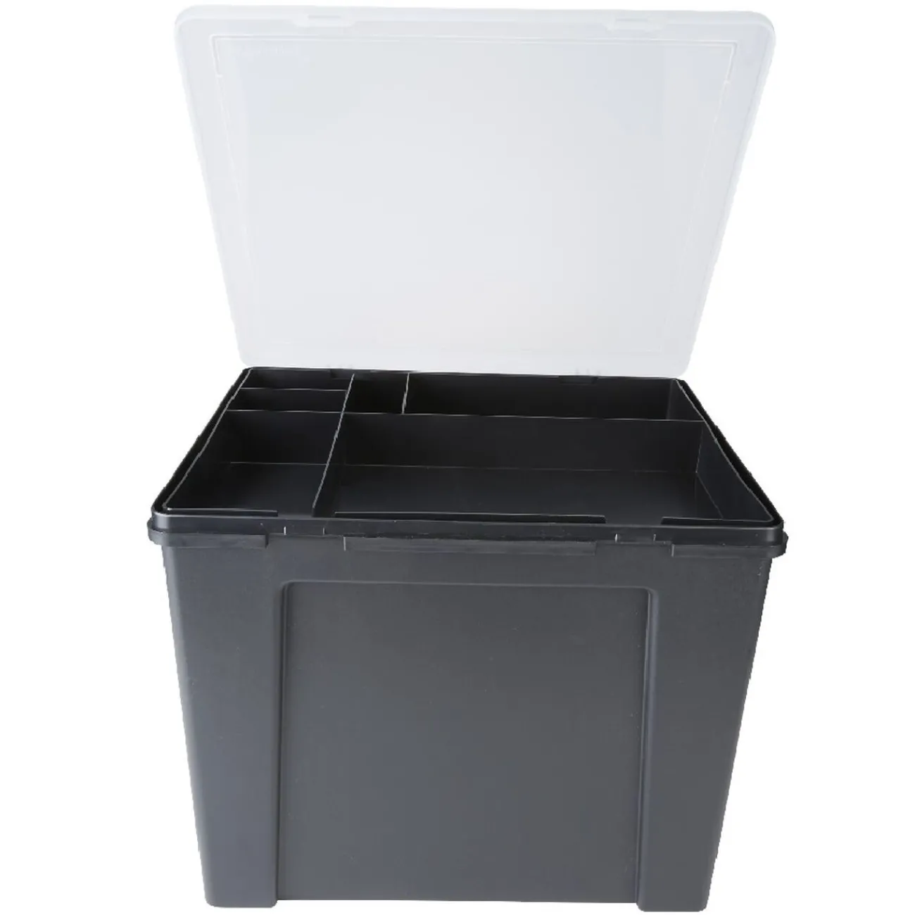 Gardez vos papiers soigneusement rangés dans cette boîte de classement en plastique noir. Dotée de 8 dossiers suspendus, cette boîte de rangement comprend également un plateau amovible transparent et compartimenté pour y glisser stylos, crayons, papier A4 et accessoires comme dans un vrai bureau.